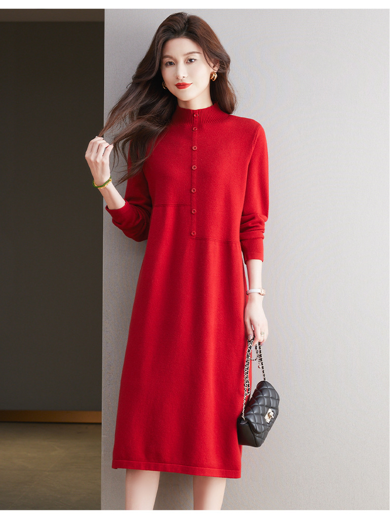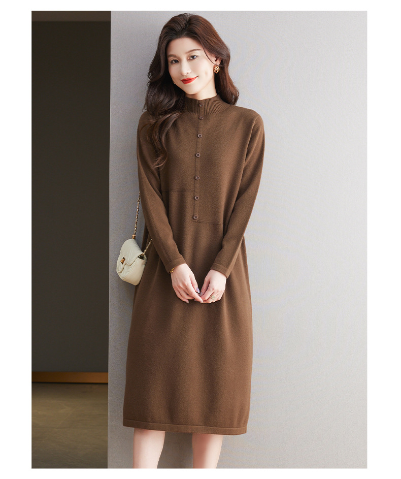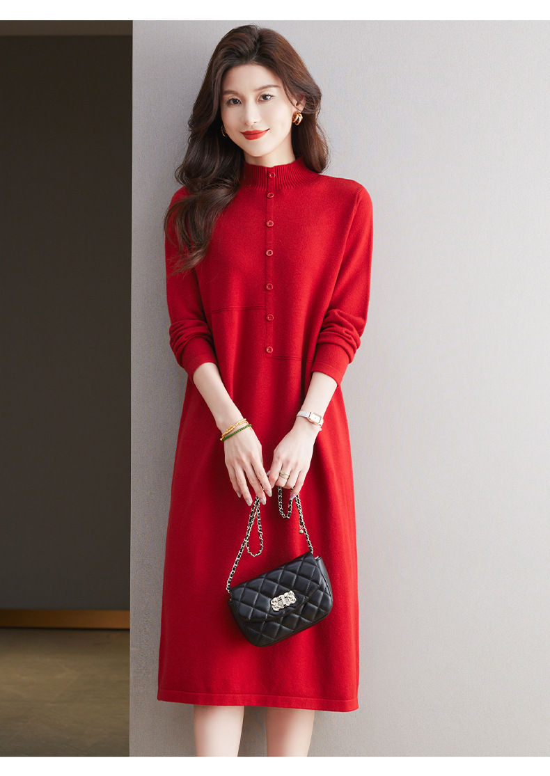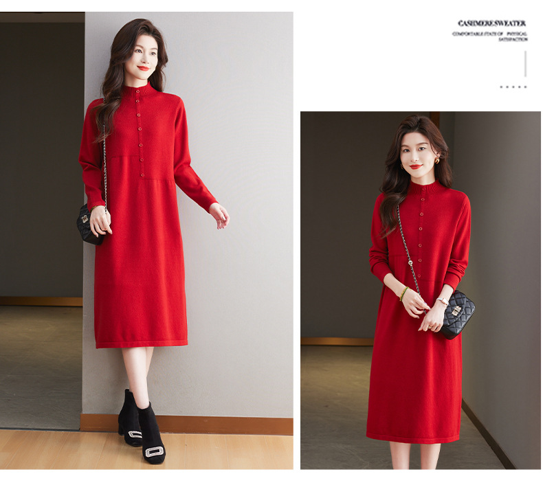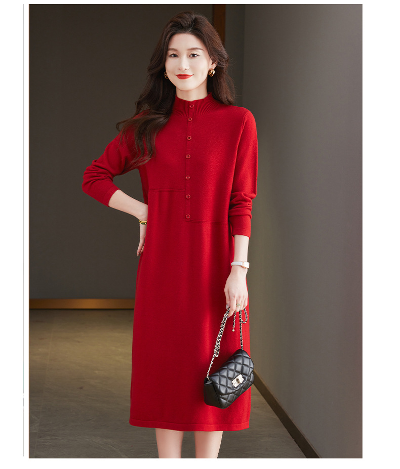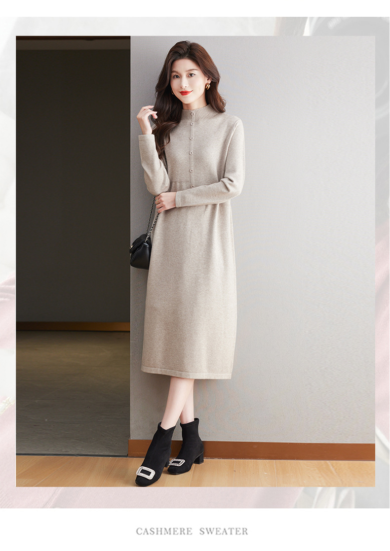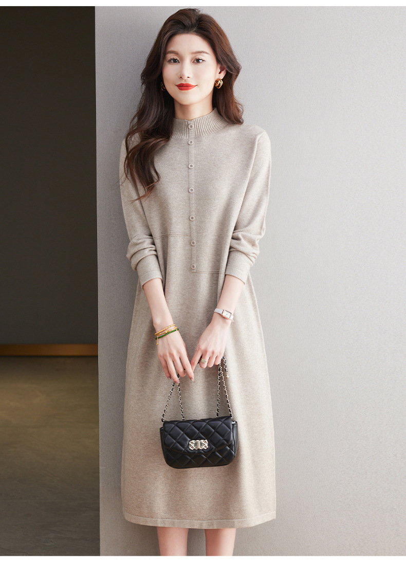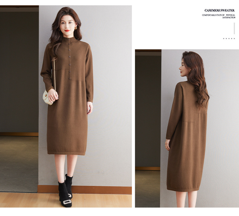 CC-13-6375韩版半高领套头针织衫毛衣女过膝开叉打底衫中长款宽松大码连衣裙