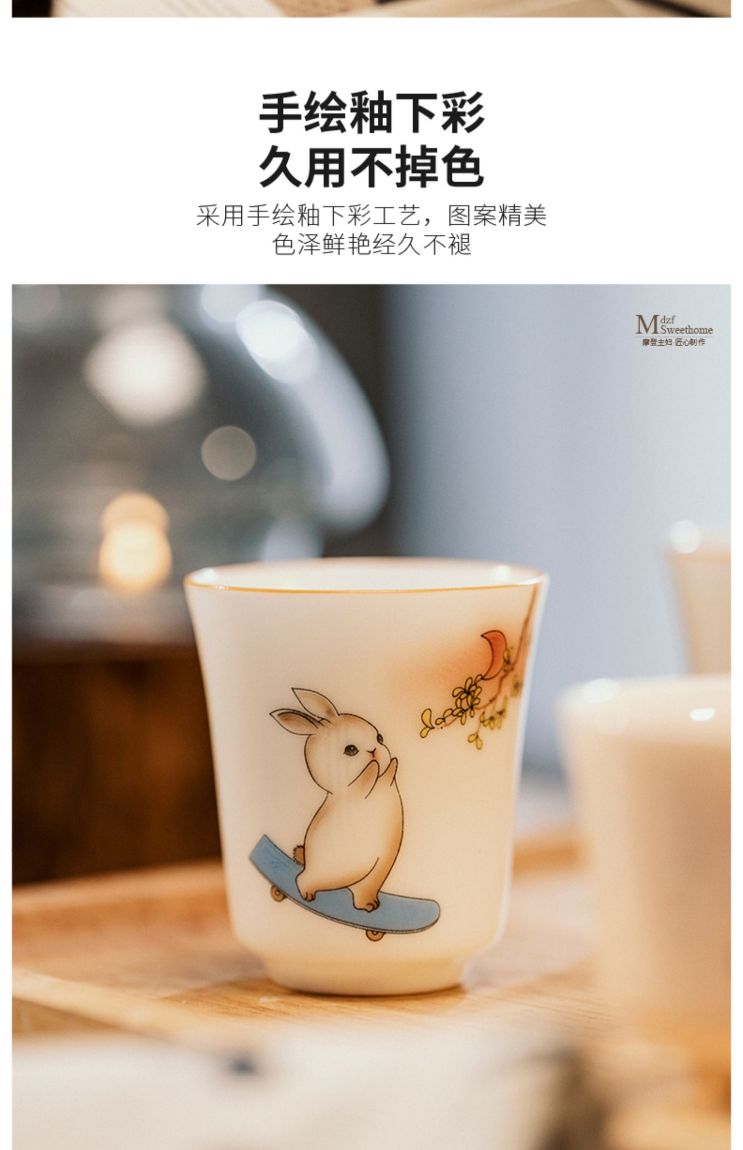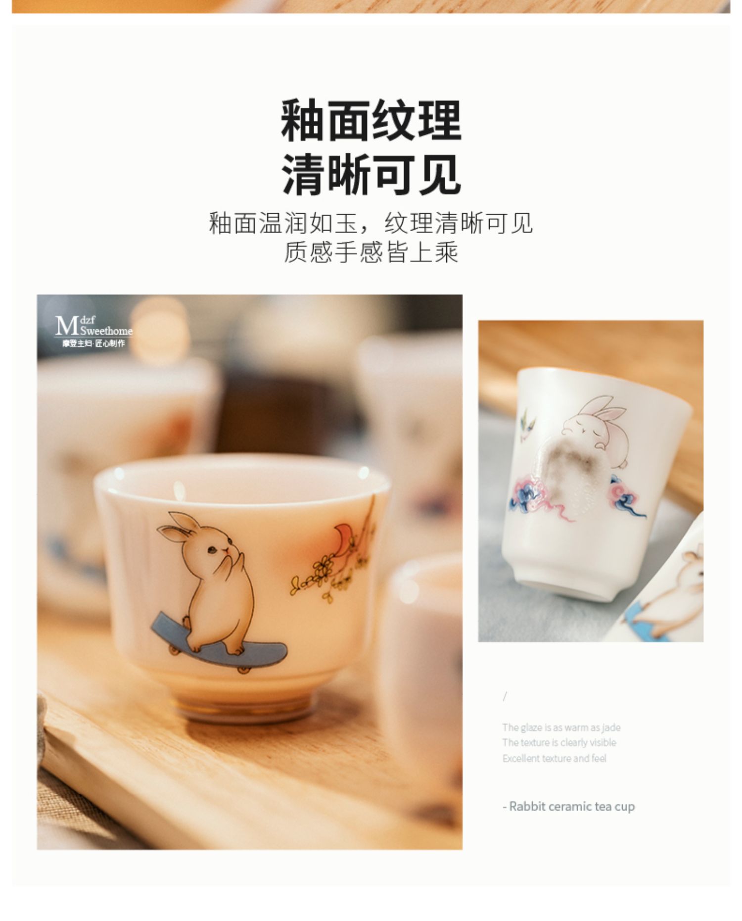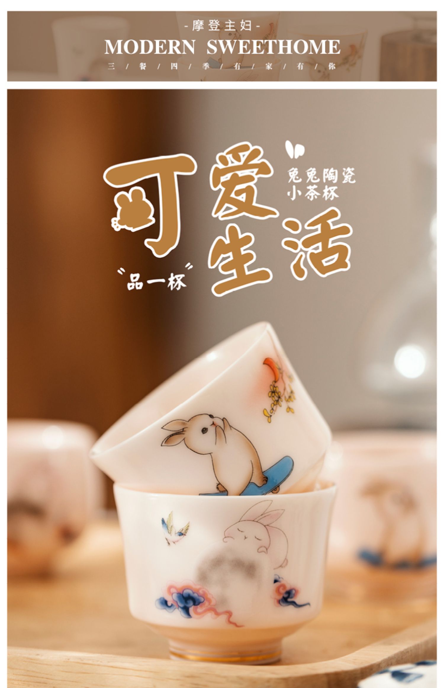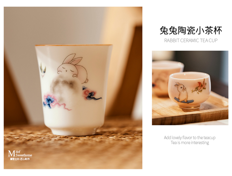 摩登主妇兔子茶杯高档个人专用主人闻香杯单杯女陶瓷功夫茶品茗杯