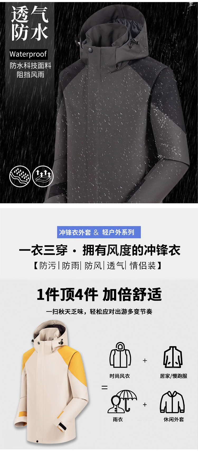 跃牌【跃LEAP-ACTIVE】系列山系冲锋衣男女三合一秋冬登山服防风外套909