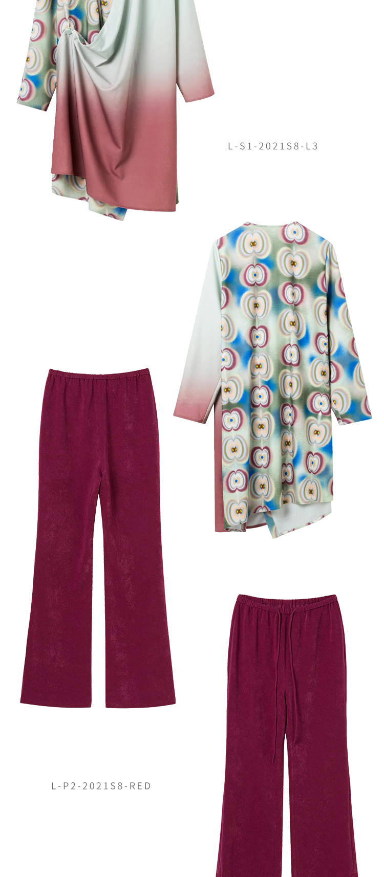 THE FABRIC UNION印花休闲长款衬衫休闲微喇叭裤