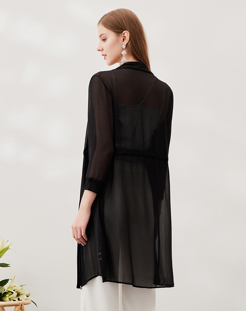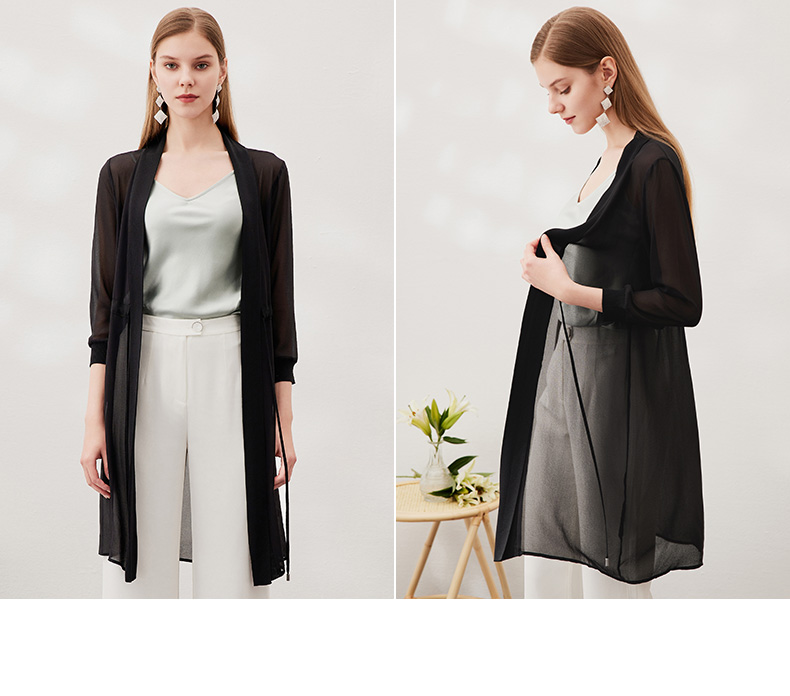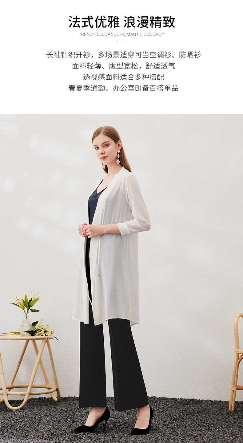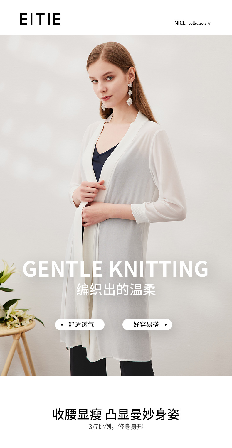 EITIE爱特爱春季新款宽松百搭抽绳显瘦针织衫开衫外套中长款6901611