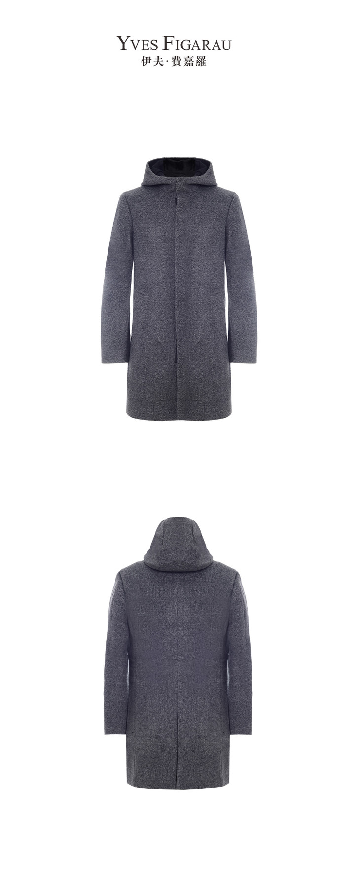 YvesFigarau伊夫·费嘉罗秋冬100%羊毛呢大衣连帽中长款保暖舒适862502