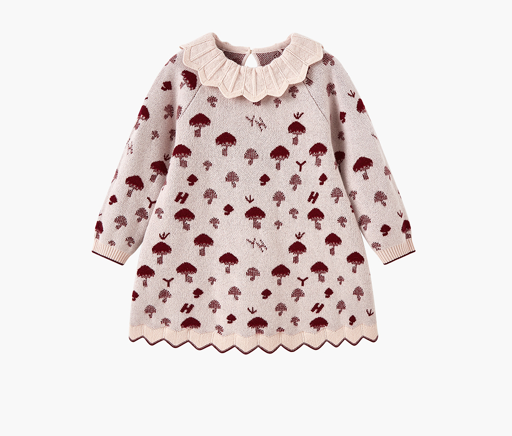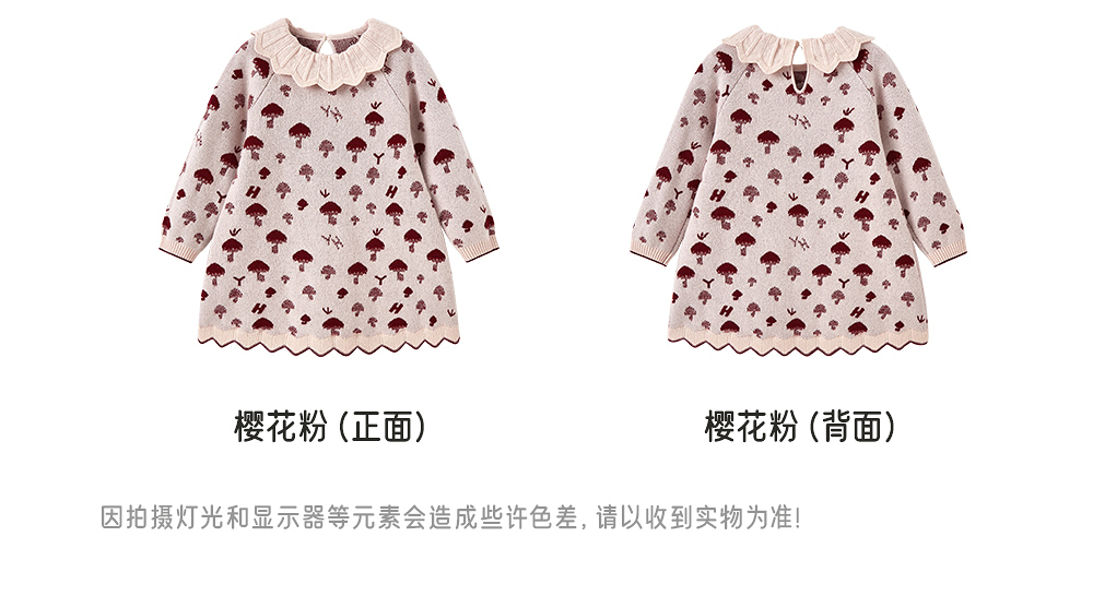 【高定系列】英氏女童山羊绒连衣裙秋冬小女孩棉羊毛长袖百搭裙子