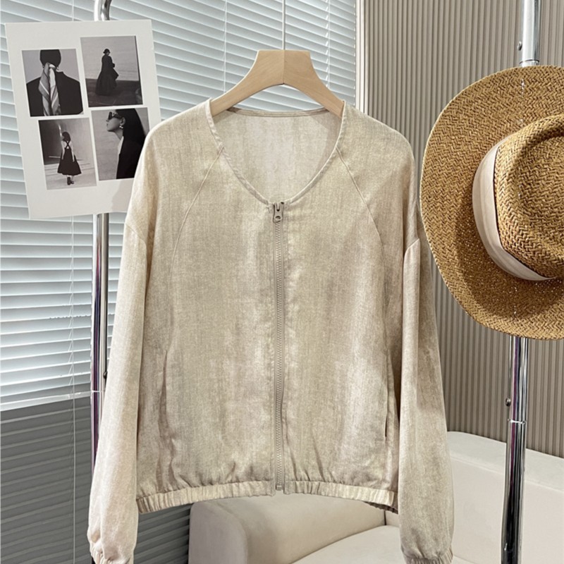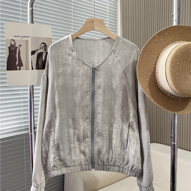 雀说扎染空调衫新款纯色净版圆领蝙蝠袖罩衫薄外套ALDJ-7727