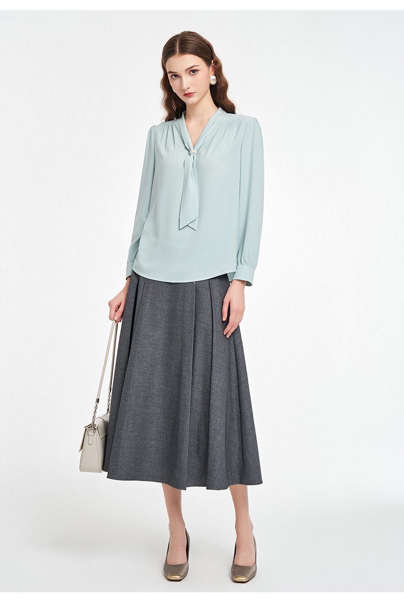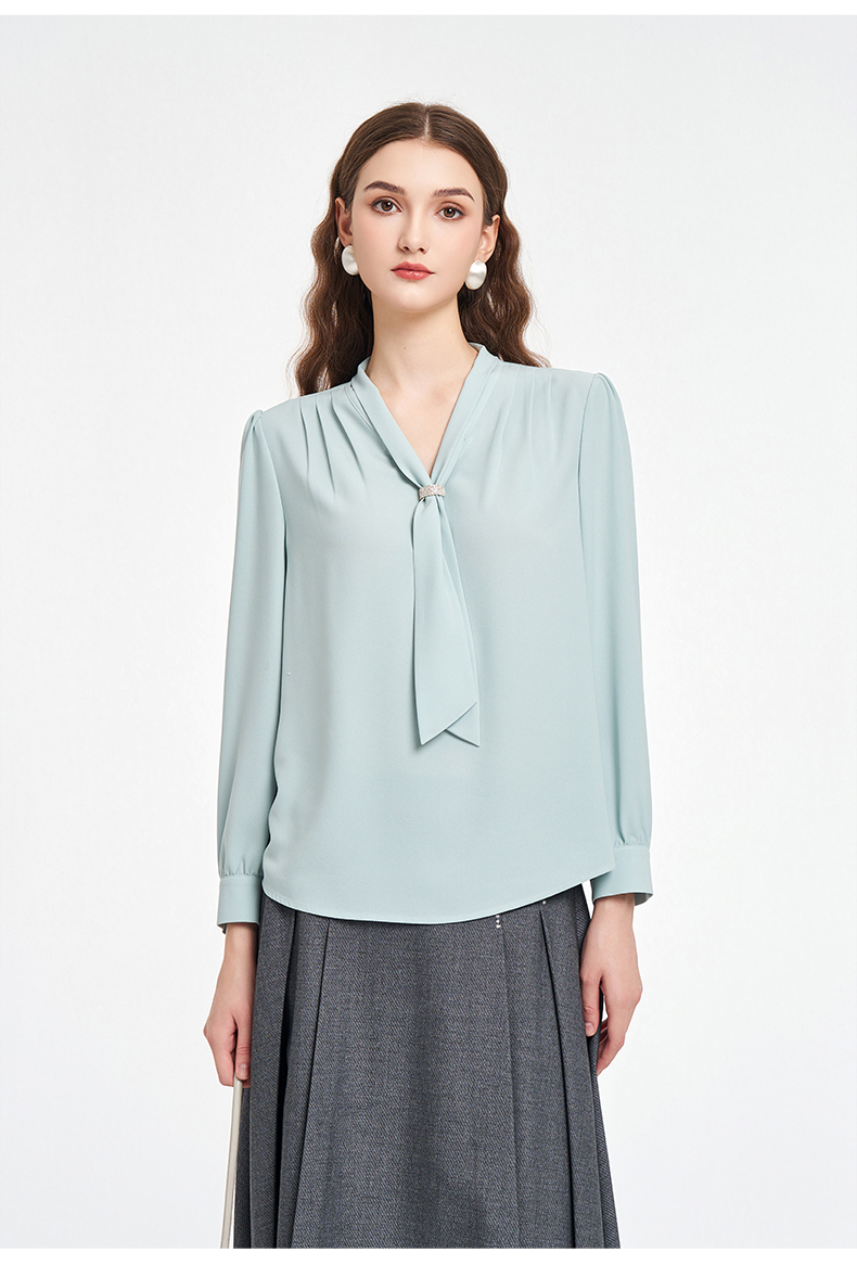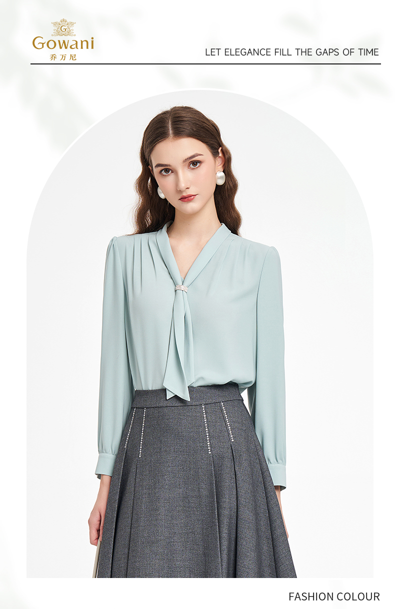 乔万尼2025秋新品连领长飘带轻盈感衬衫上衣ED3C201