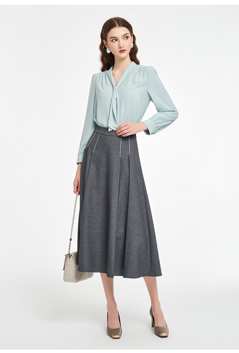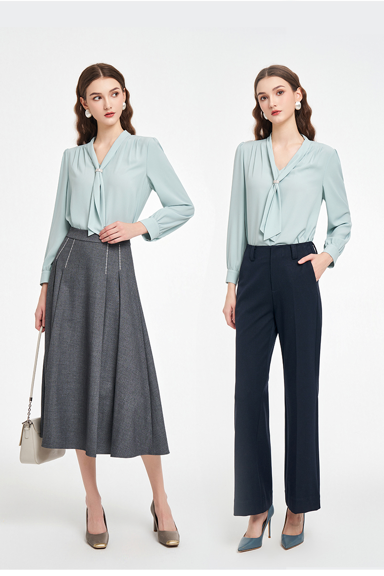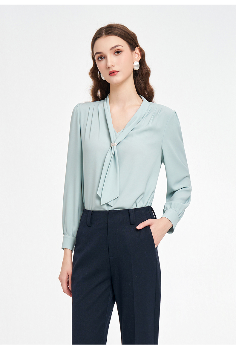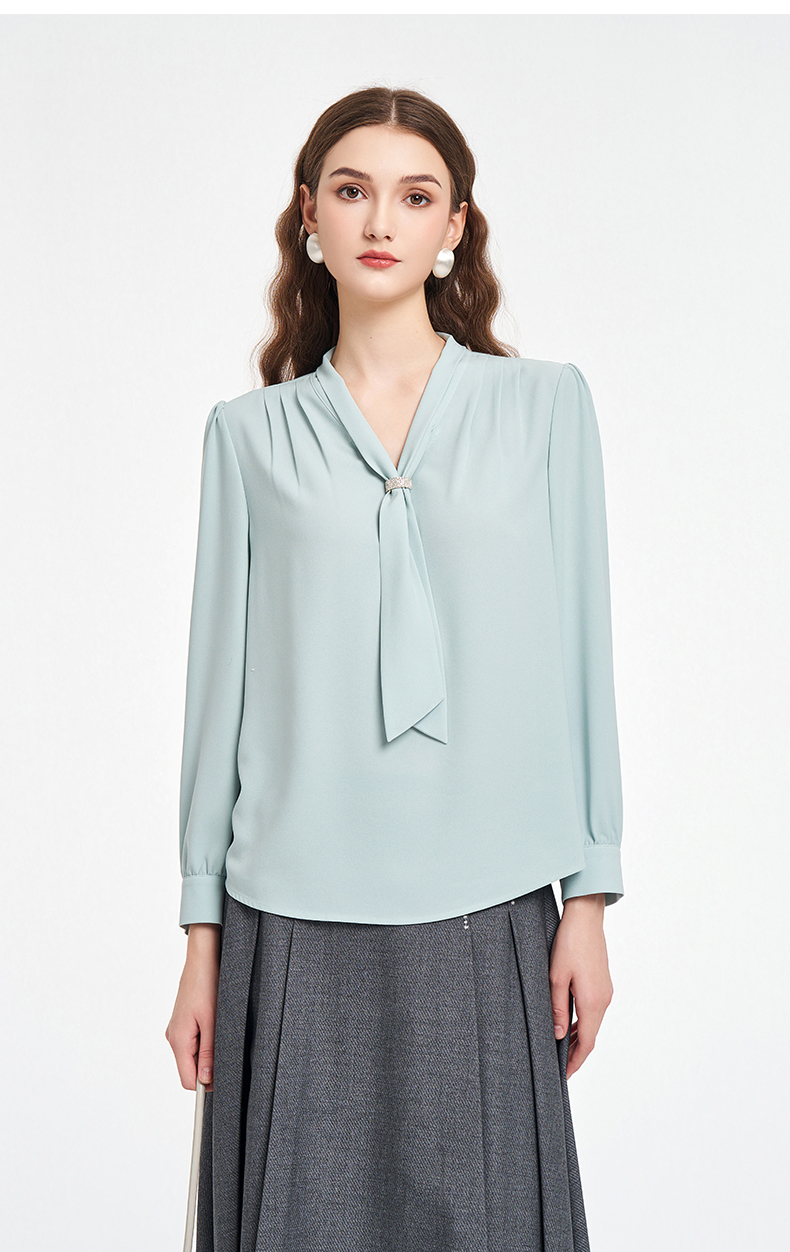 乔万尼2025秋新品连领长飘带轻盈感衬衫上衣ED3C201