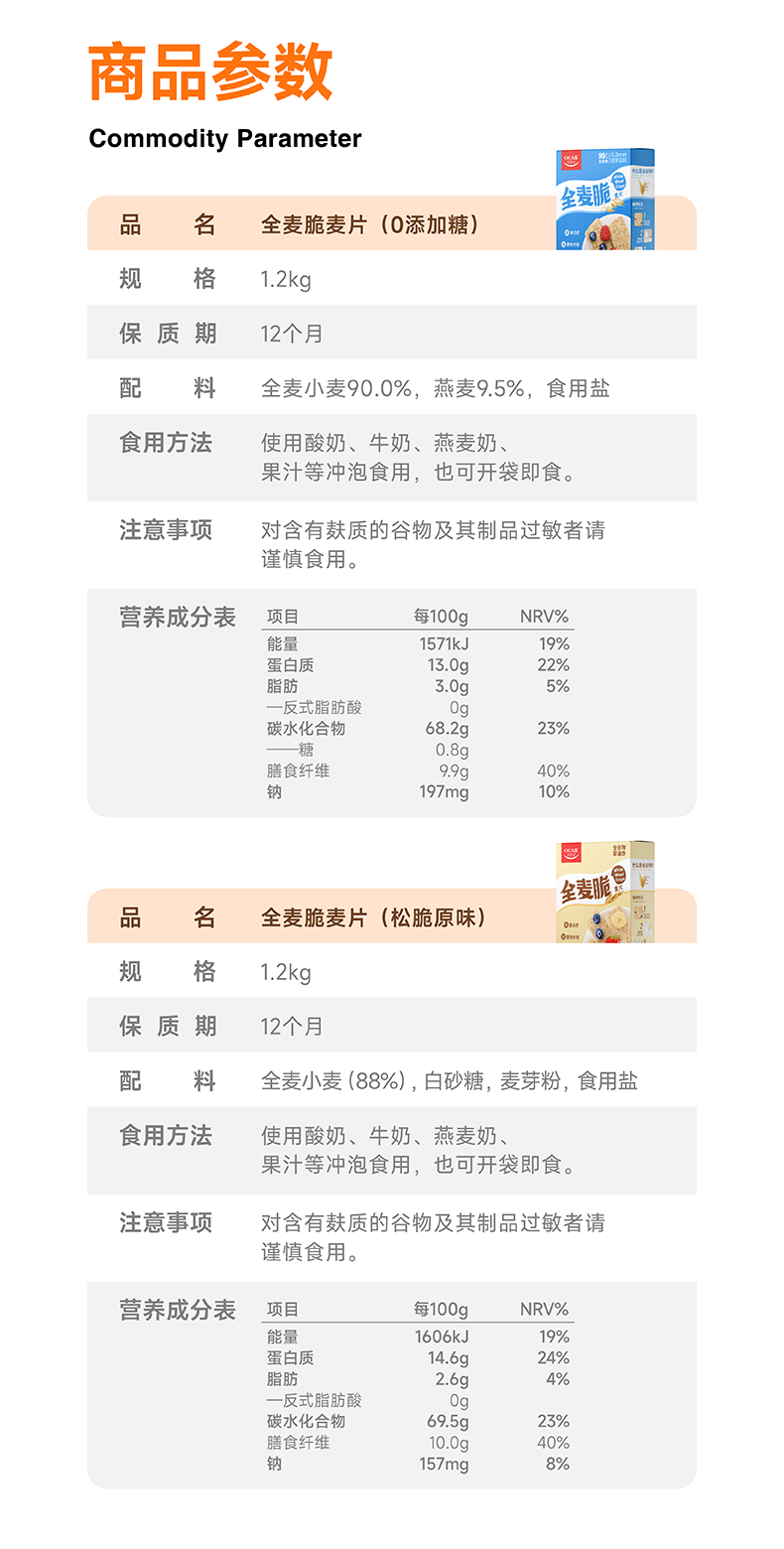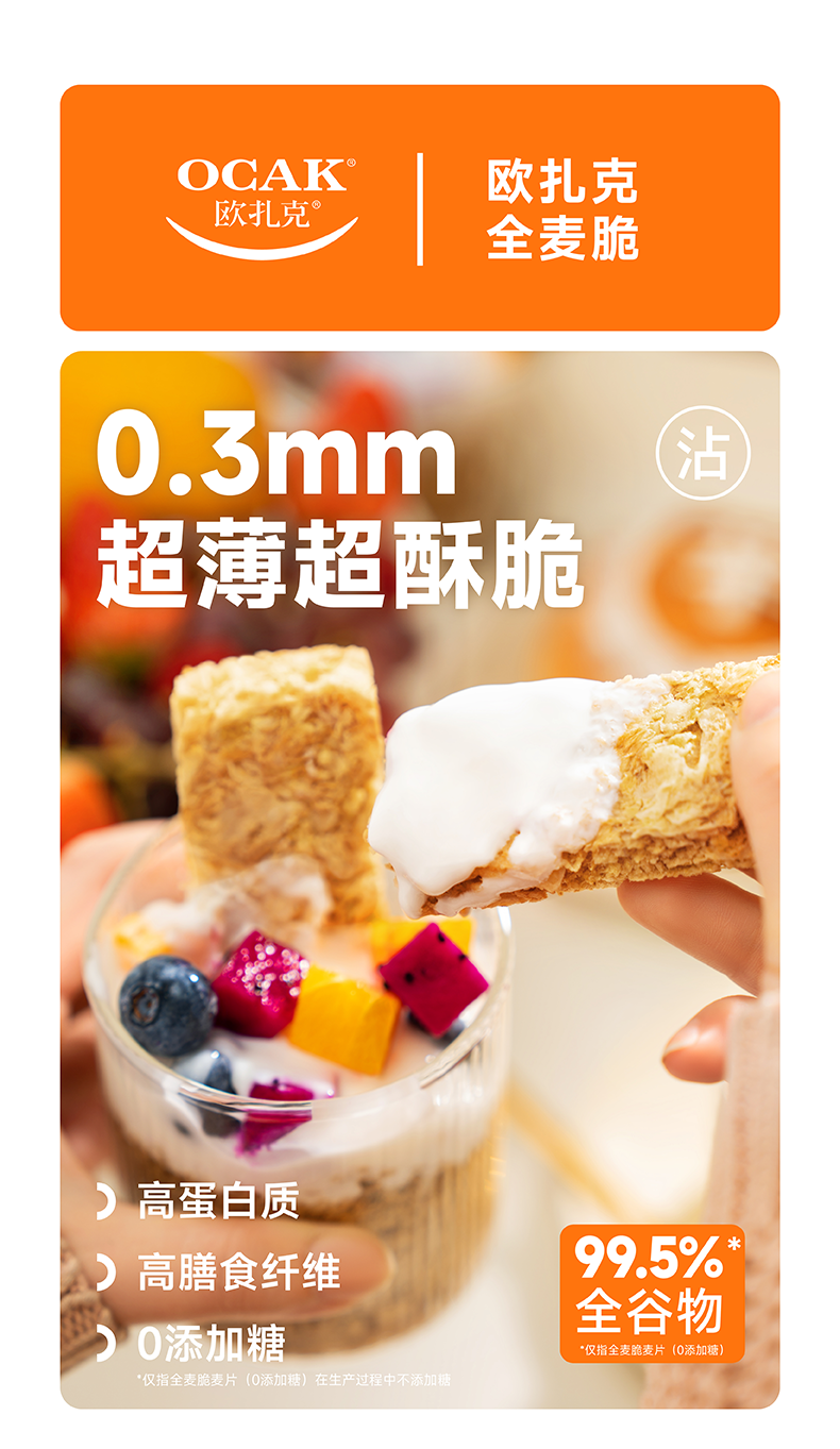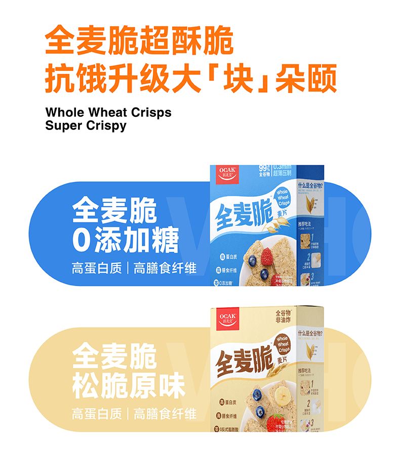 欧扎克全麦脆麦片代餐燕麦麸皮脆即食健身饱腹营养早餐冲饮1.2kg