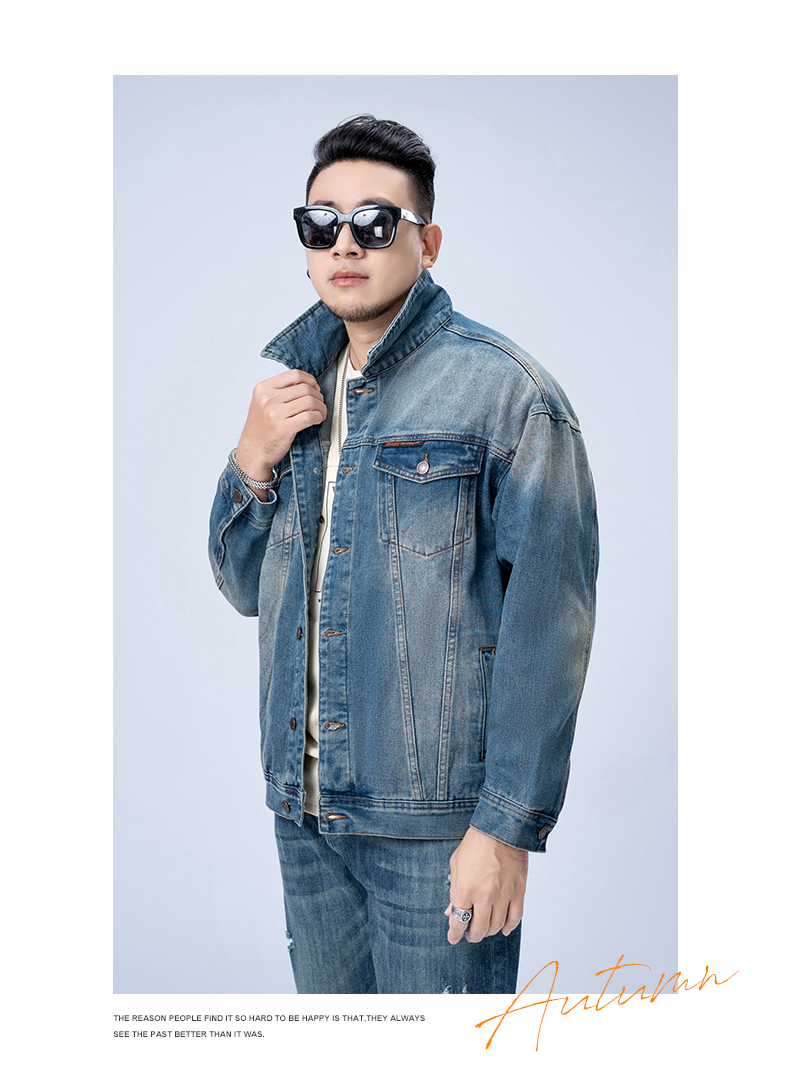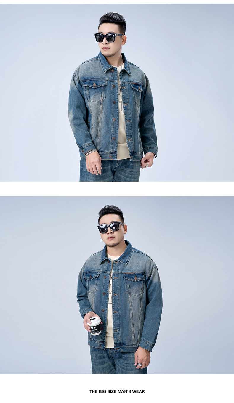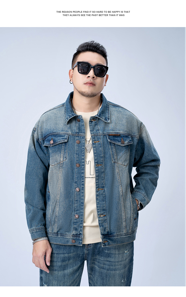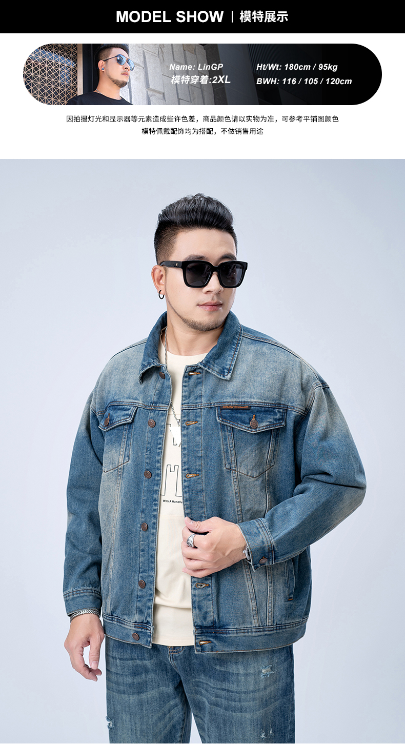 【Q】【新款DMH】大依优型大码牛仔外套潮牌男装胖子春翻领工装飞行夹克宽松外套男