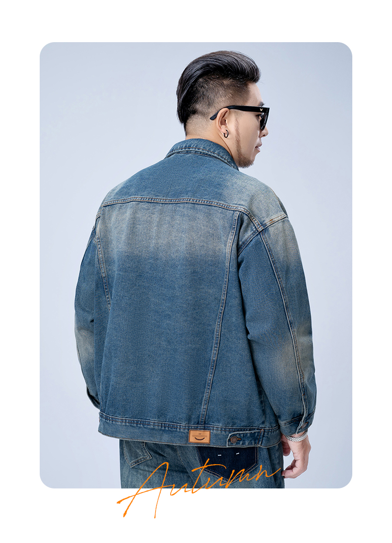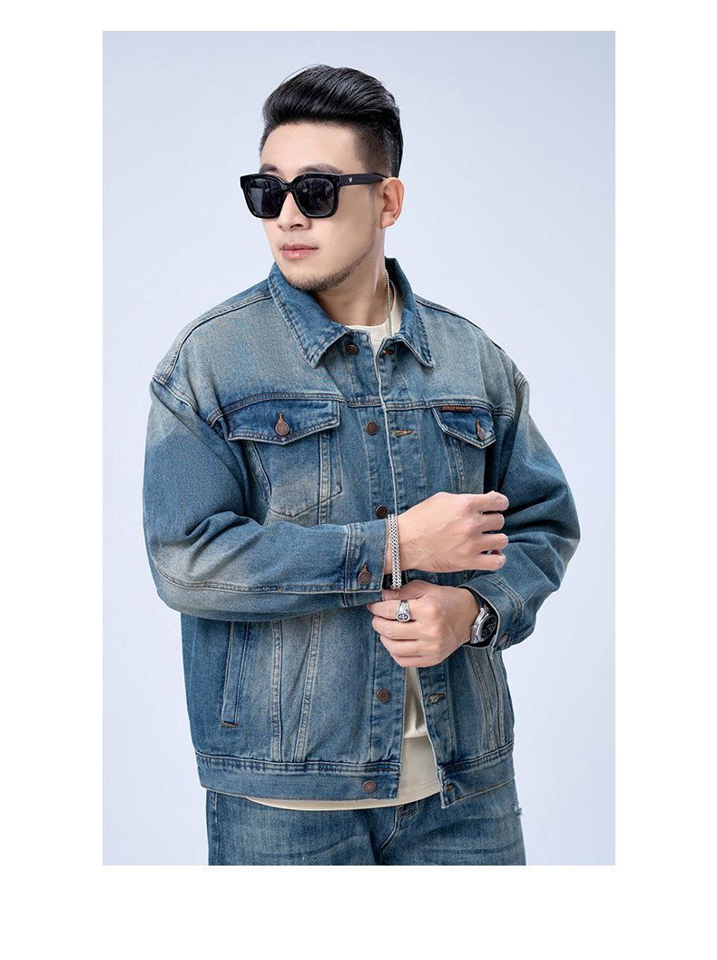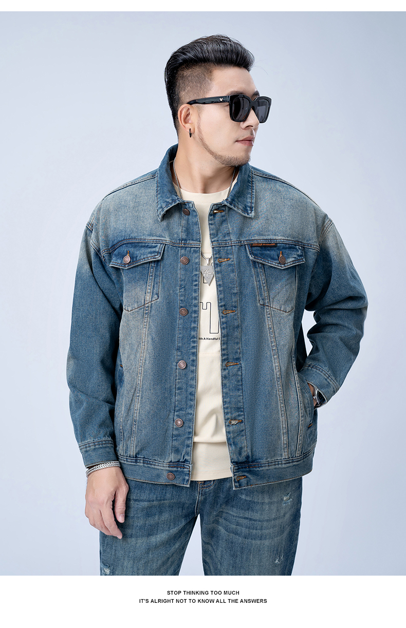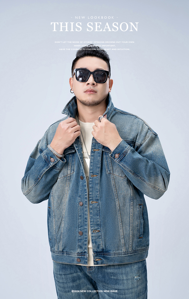 【Q】【新款DMH】大依优型大码牛仔外套潮牌男装胖子春翻领工装飞行夹克宽松外套男