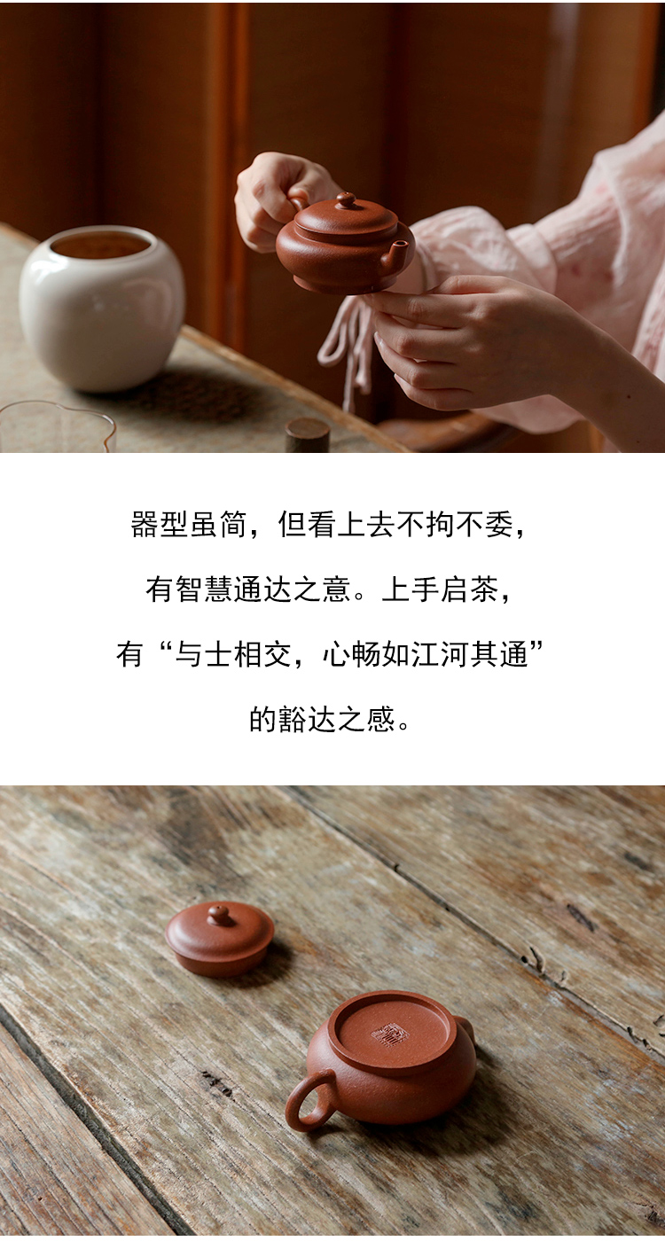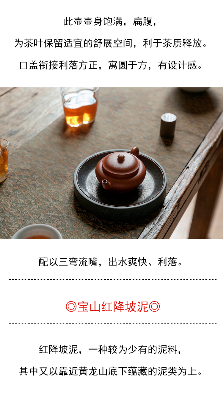 茶香记 紫砂壶宝山红降坡全手工扁宫灯80ml文人器古典英气泡茶壶