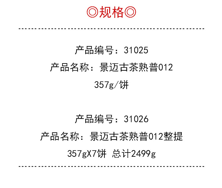 茶香记 景迈古茶熟普012 11年转化工艺到位 口感上乘甜醇糯滑