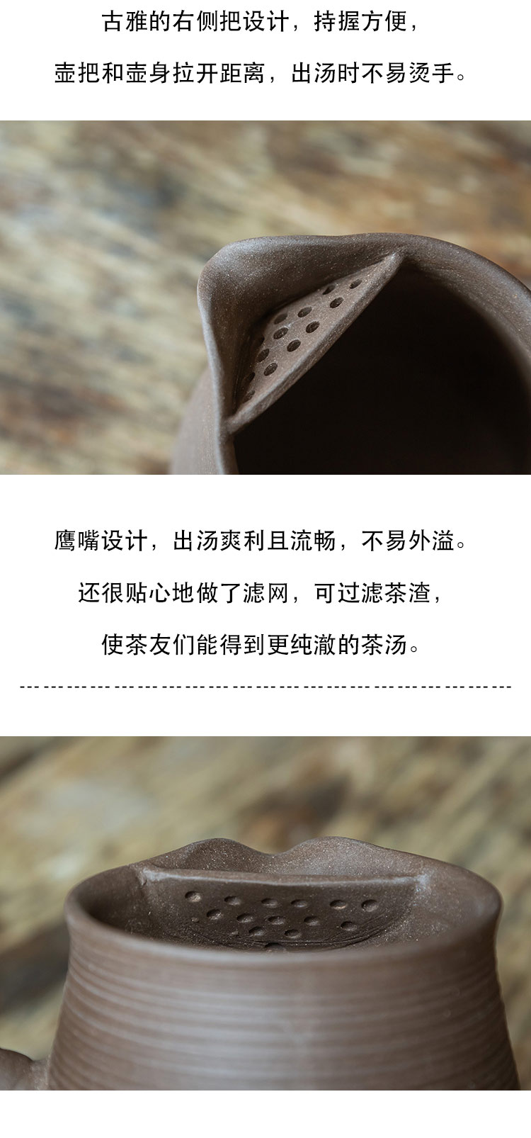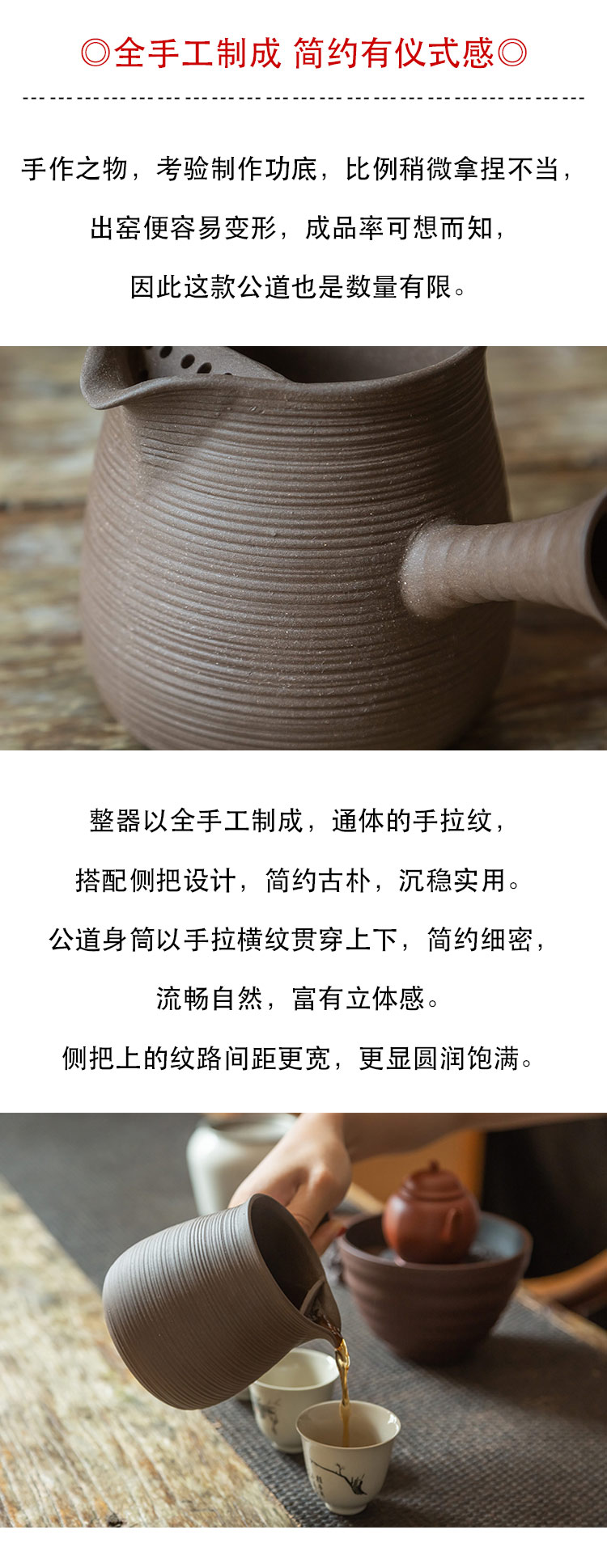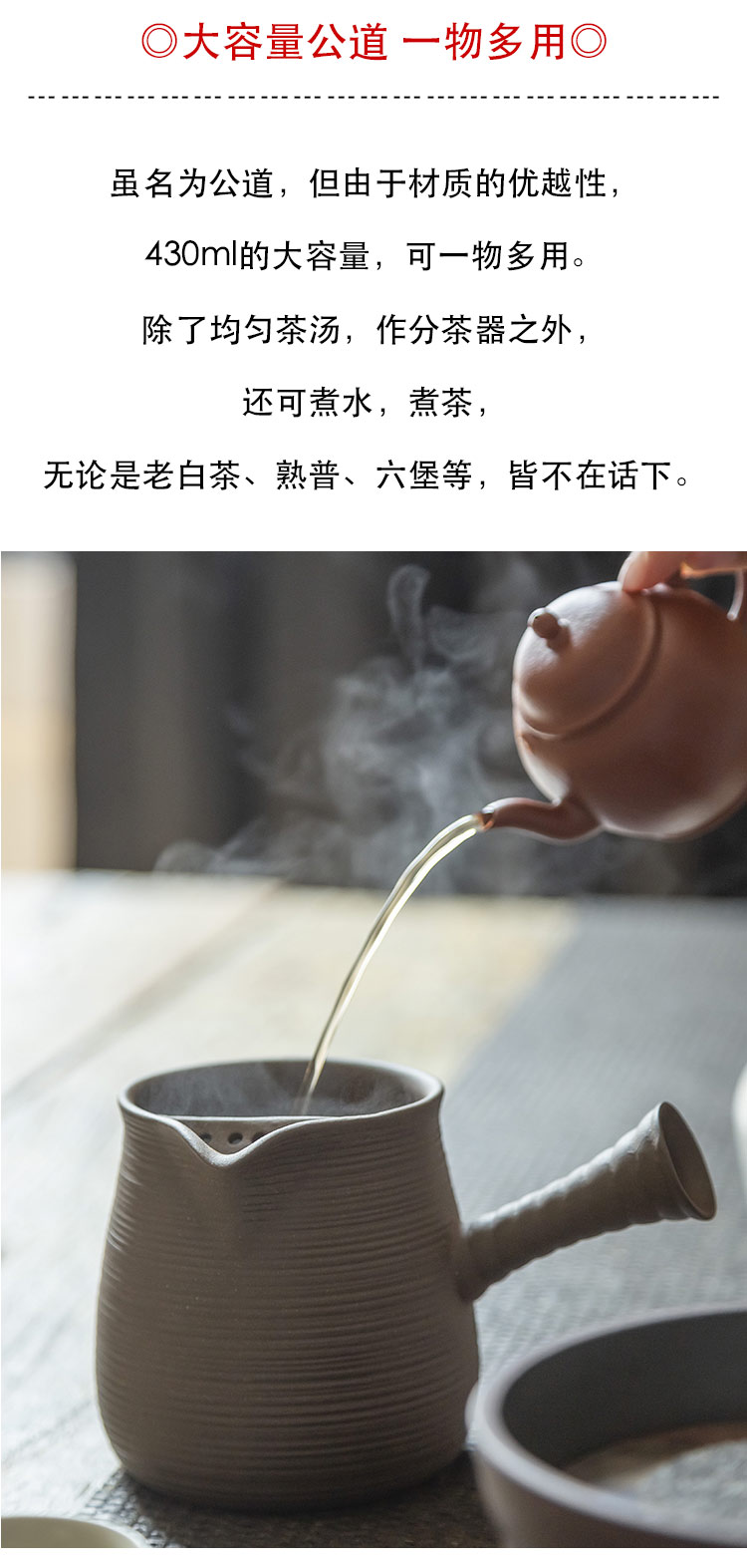 茶香记 耐热紫砂陶泥 侧把大满公道 全手工 古拙质朴 大气沉稳