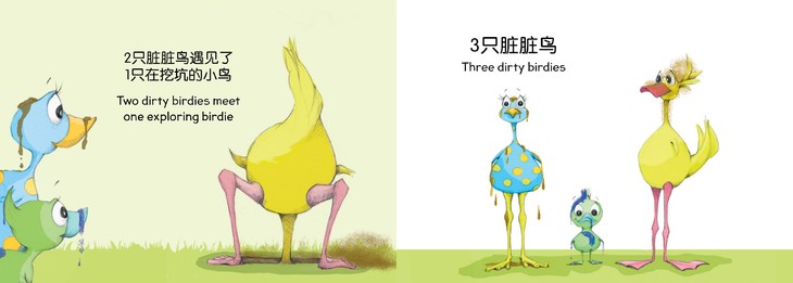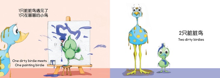 本套书从美国引进,旨在通过可爱的动物形象带领小朋友学习方位概念、学习数字1到5、学习颜色和学习动物的叫声。5只可爱的小鸟是怎么变成脏脏鸟的呢?本书用非常常见的生活场景带领幼儿在有趣的故事里学习从1数到5。