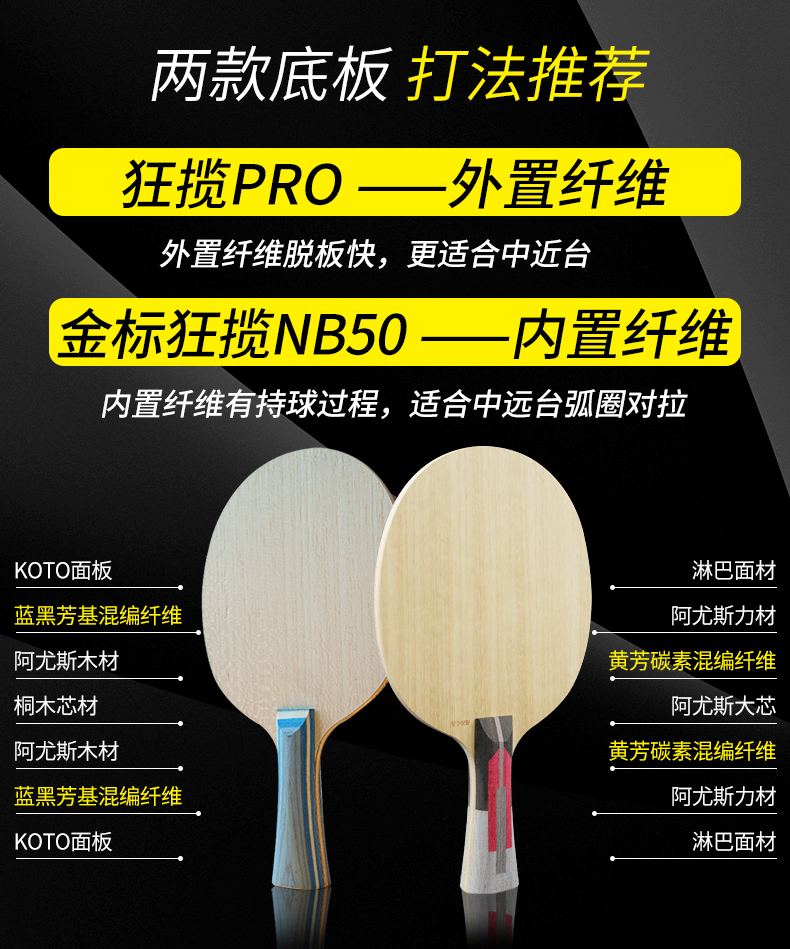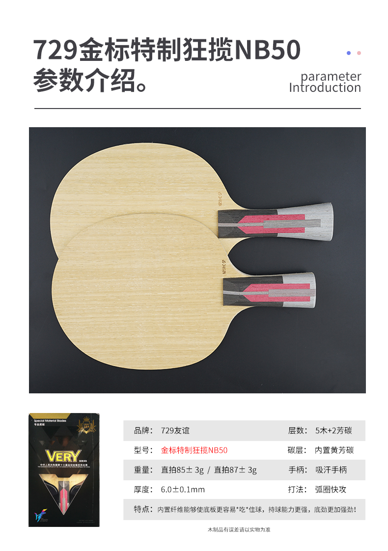 友谊729狂揽内置纤维NB50国特制专用7层专业级乒乓球底板
