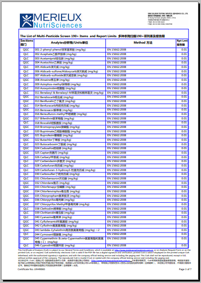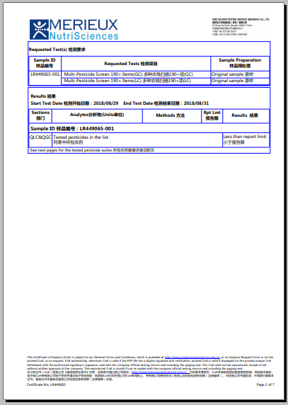 产品经过检测,191项农残无检出,符合安全标准。