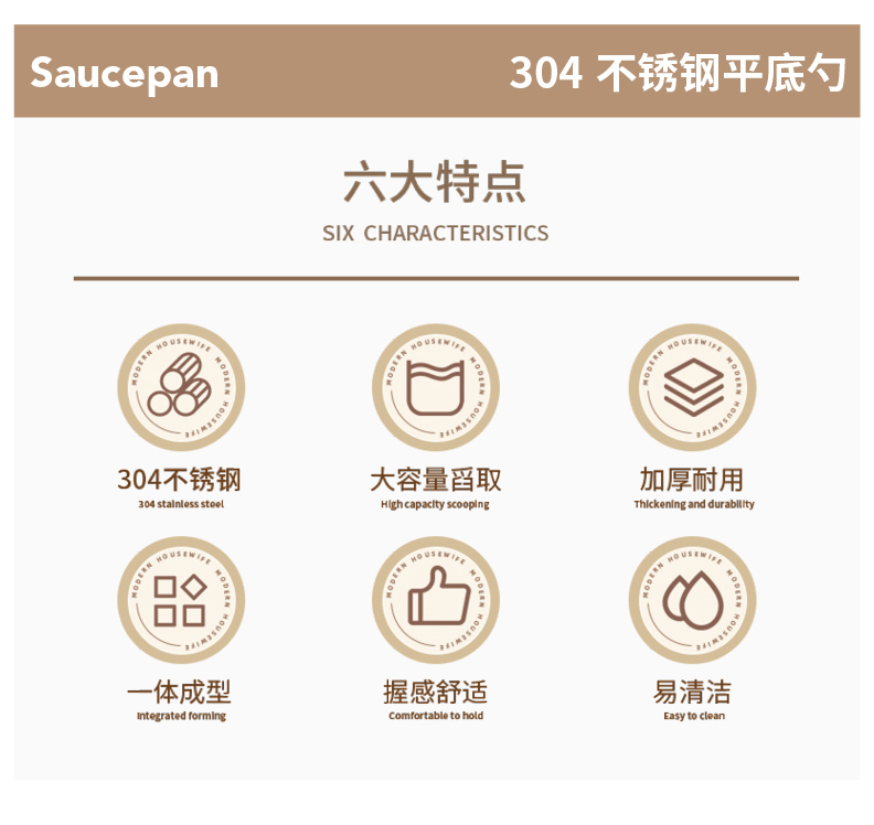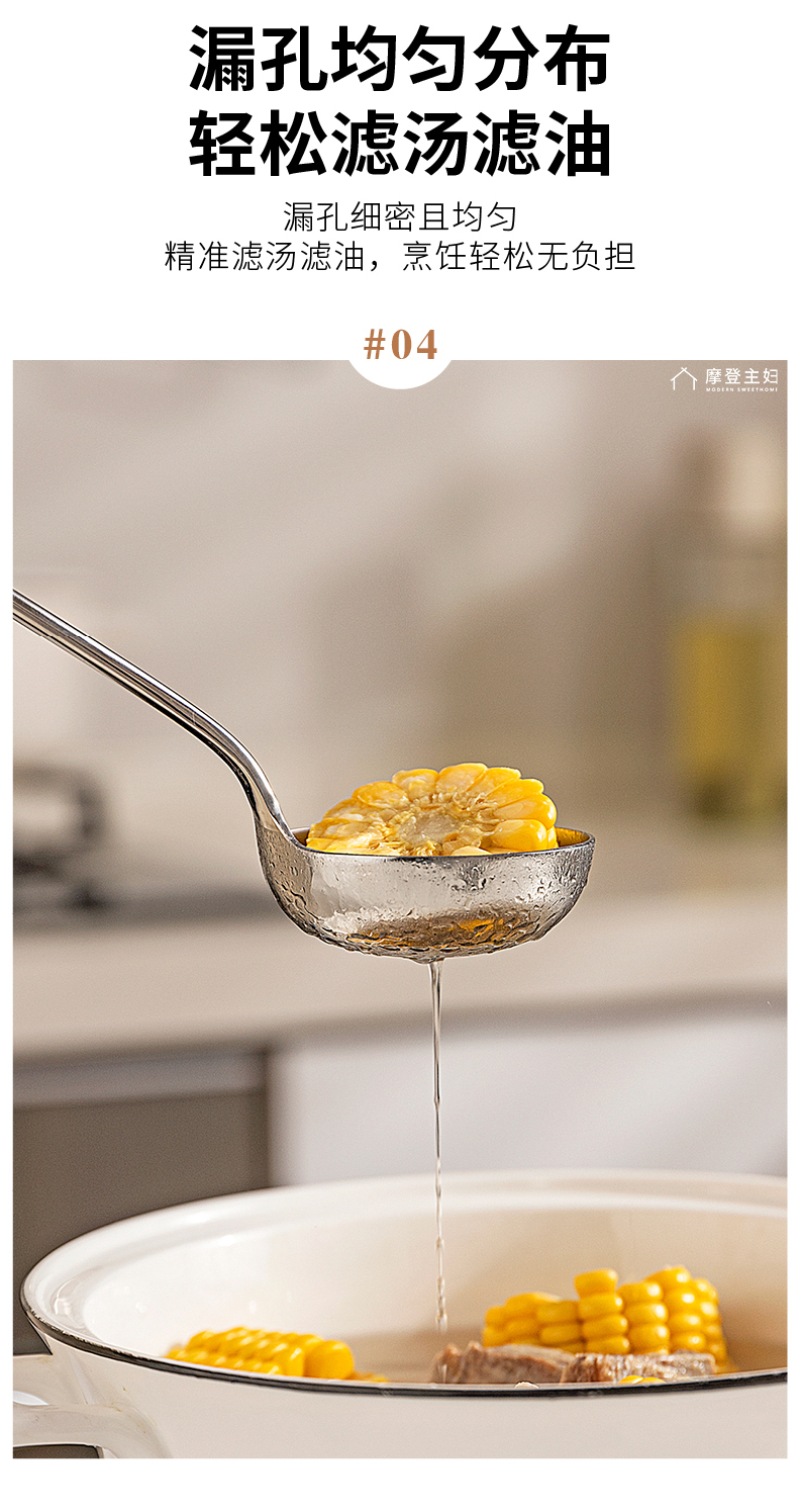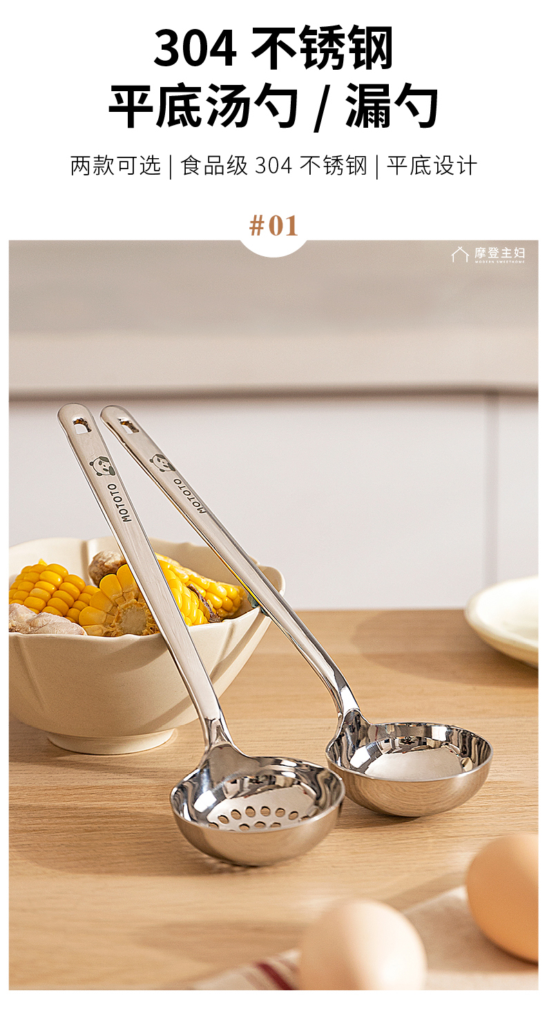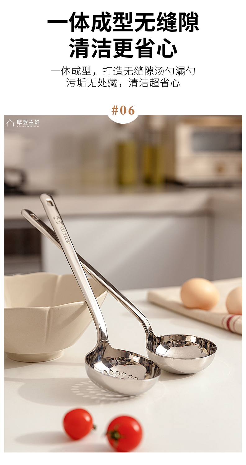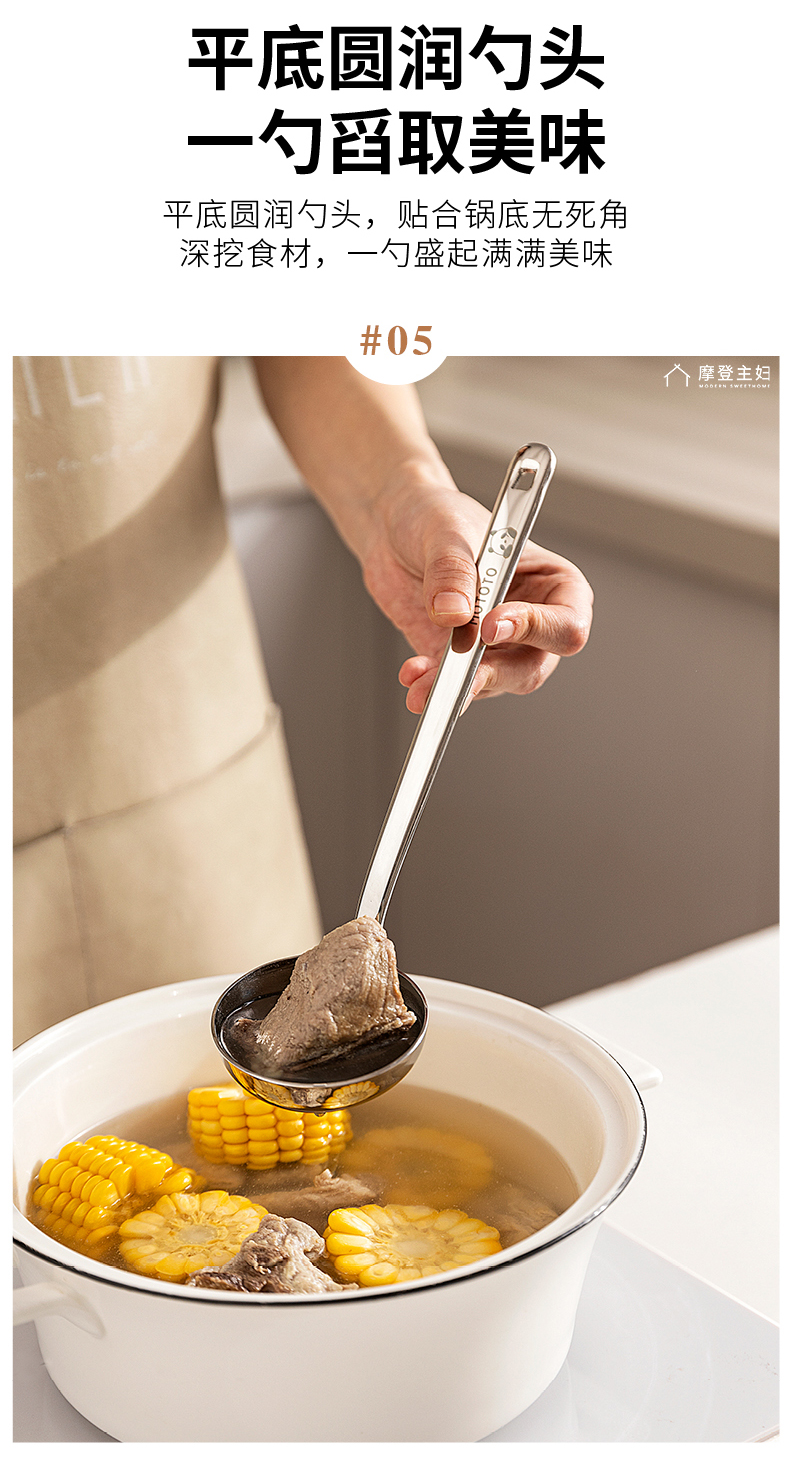 摩登主妇304不锈钢汤勺家用火锅盛汤粥大号汤匙厨房长柄漏勺勺子