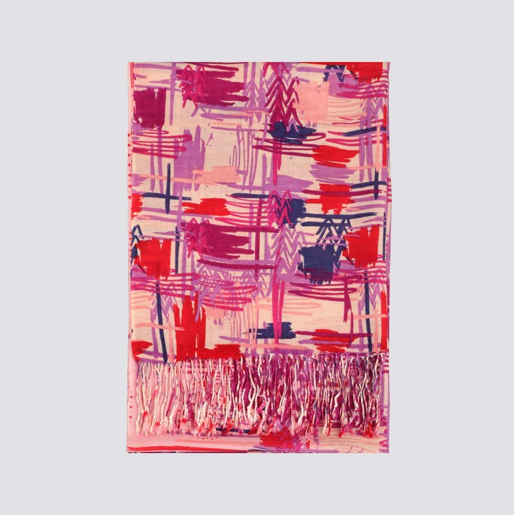 CESARE BRUNI品牌,时尚印花羊毛流苏披肩 CFW1202011