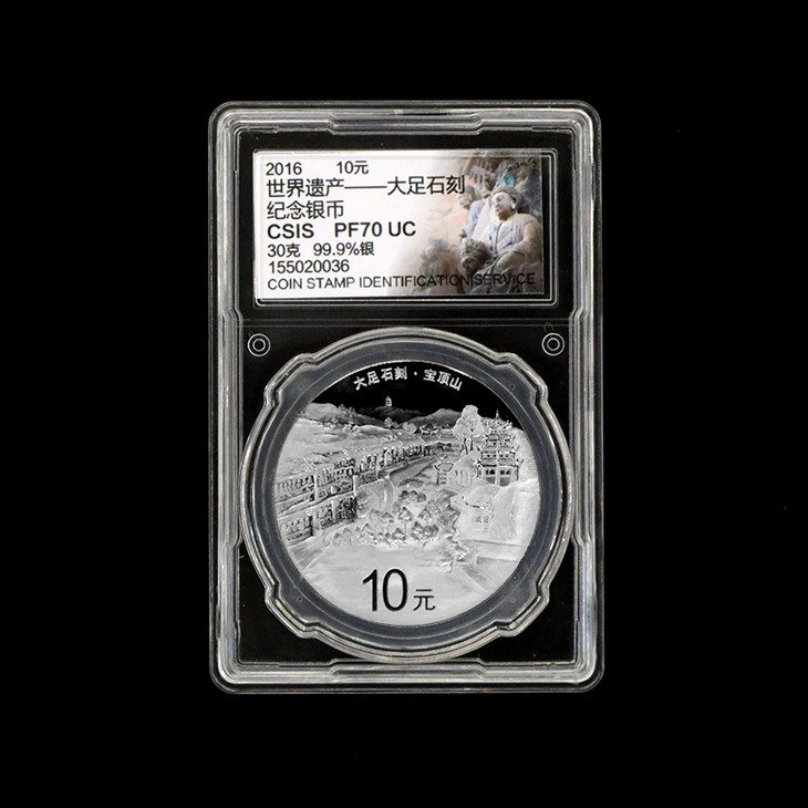 世界遗产 大足石刻纪念银币 含纯银30克 封装评级带证书 带礼盒