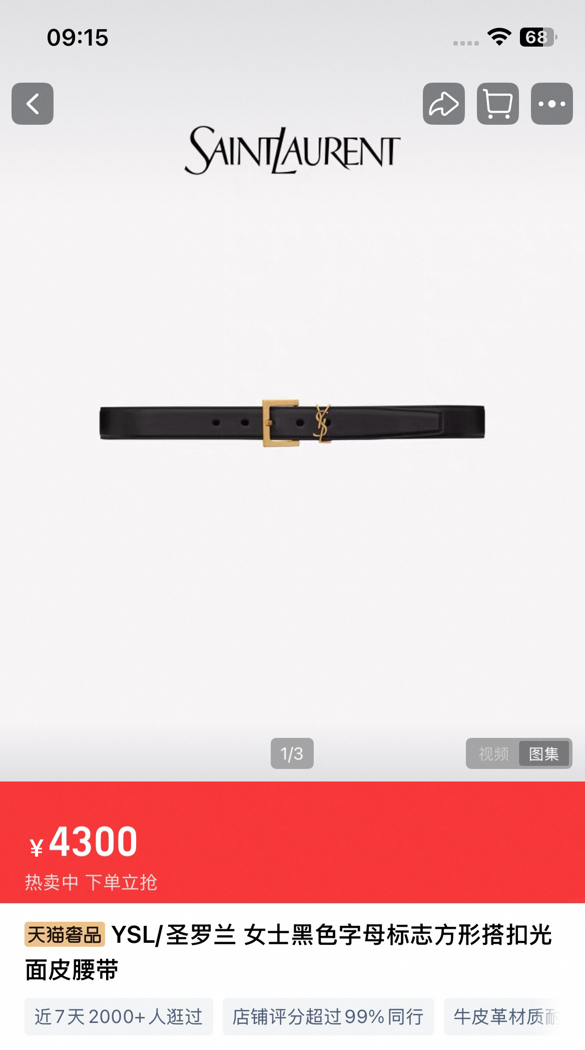YSL圣罗兰方形搭扣腰带
