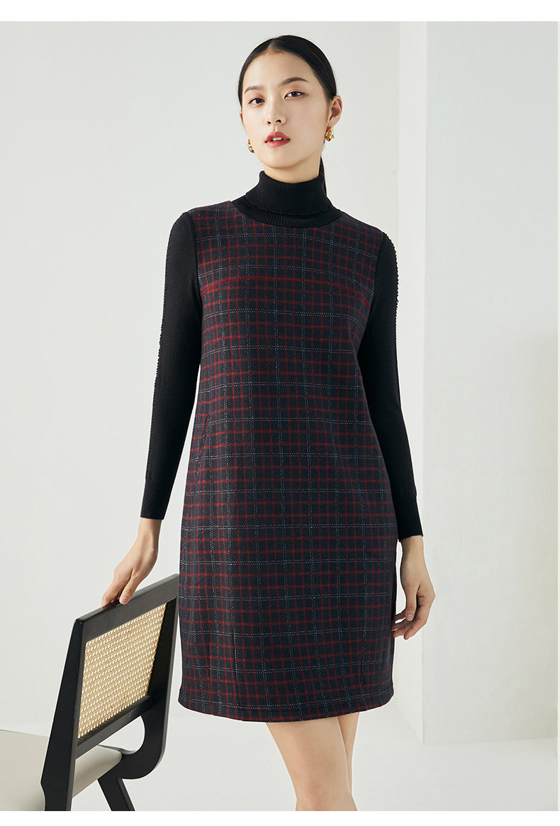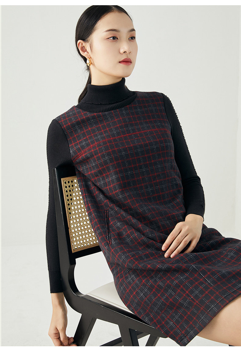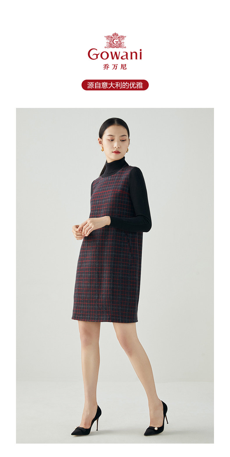 乔万尼秋冬新品绵羊毛黑红苏兰格设计经典休闲弹力面料连衣裙ES4E327