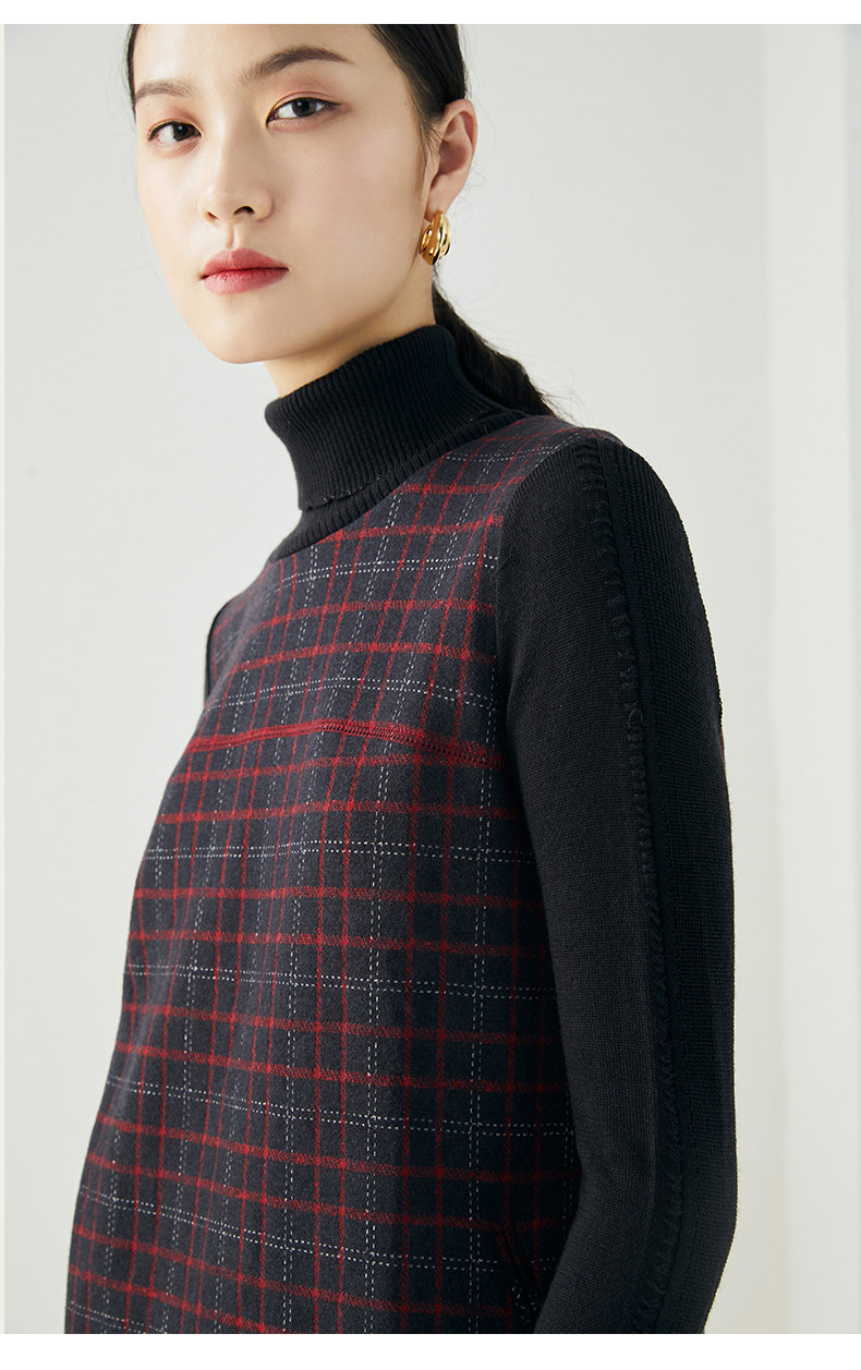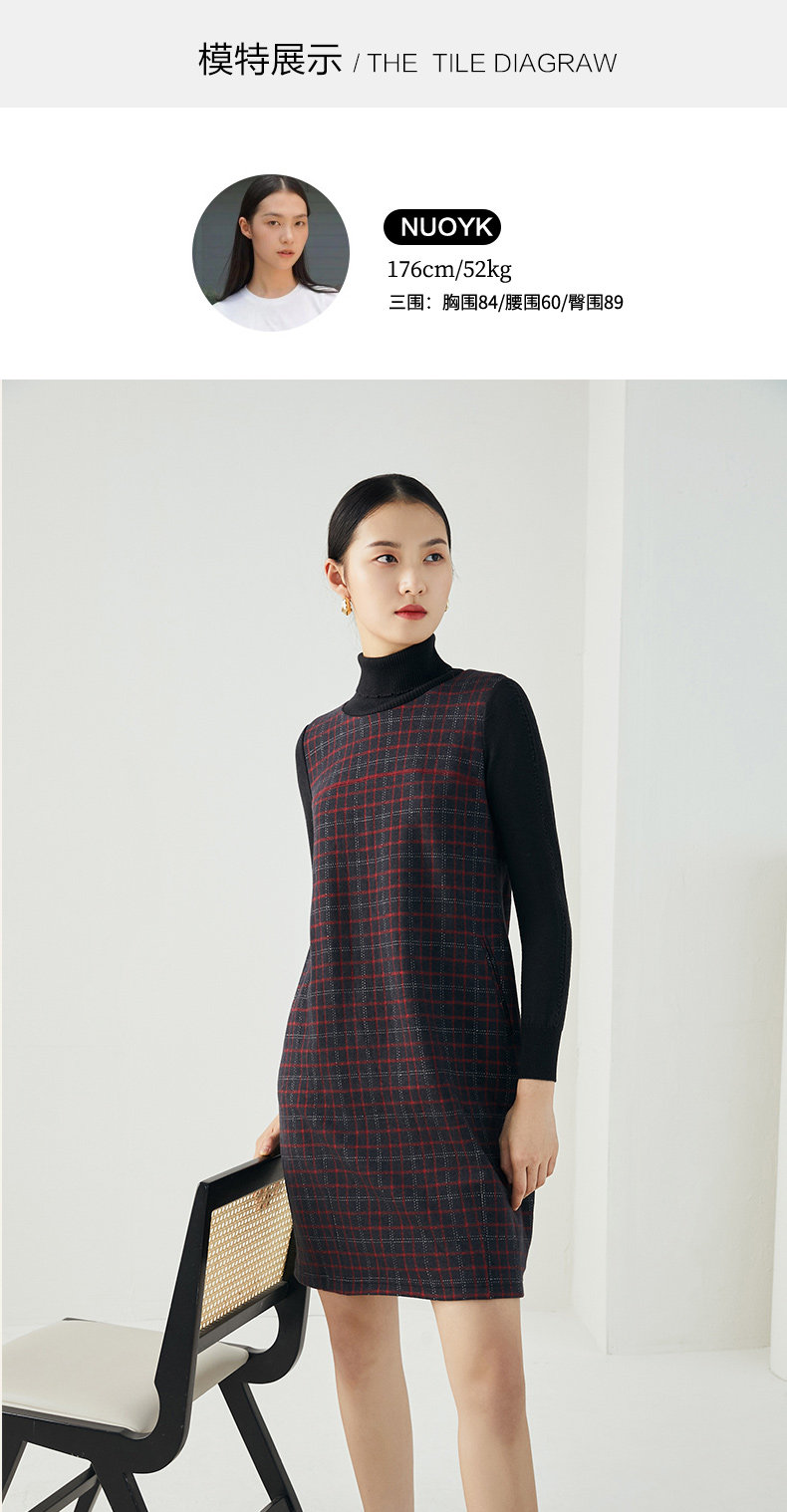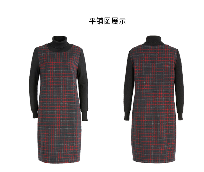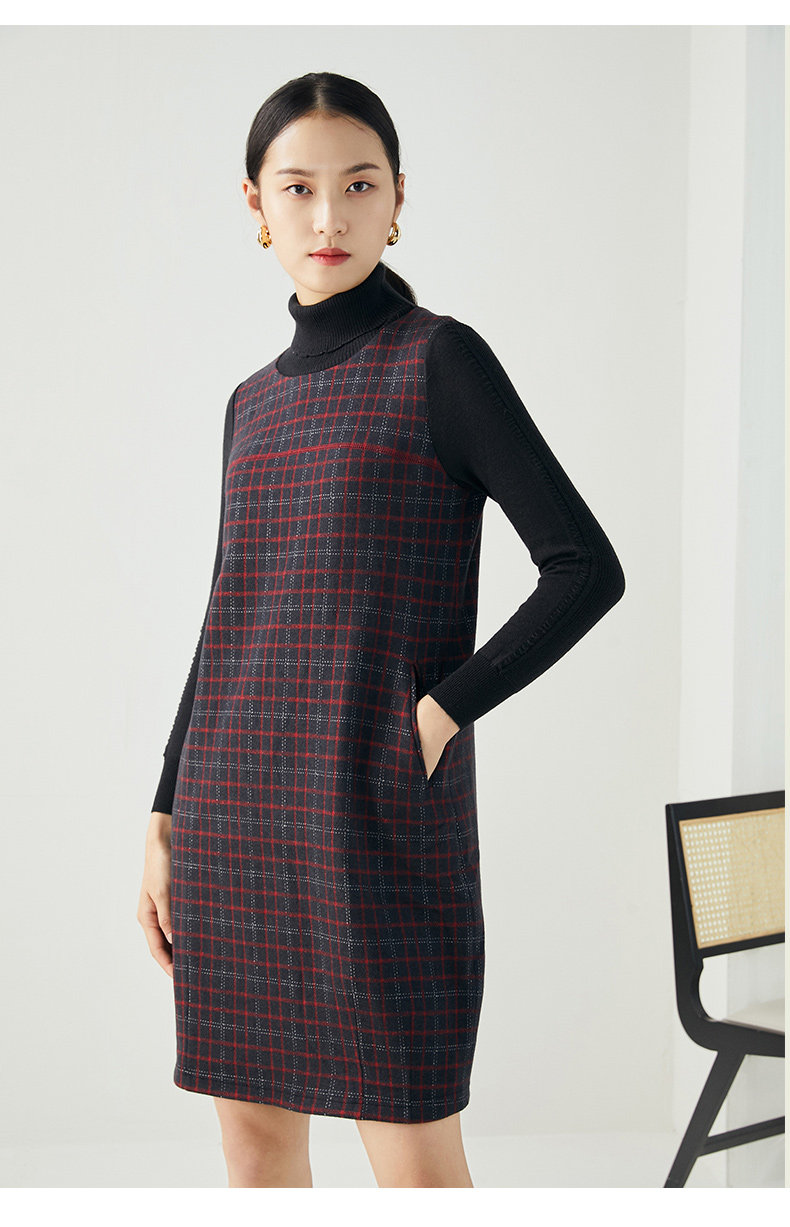 乔万尼秋冬新品绵羊毛黑红苏兰格设计经典休闲弹力面料连衣裙ES4E327
