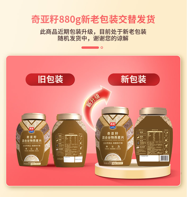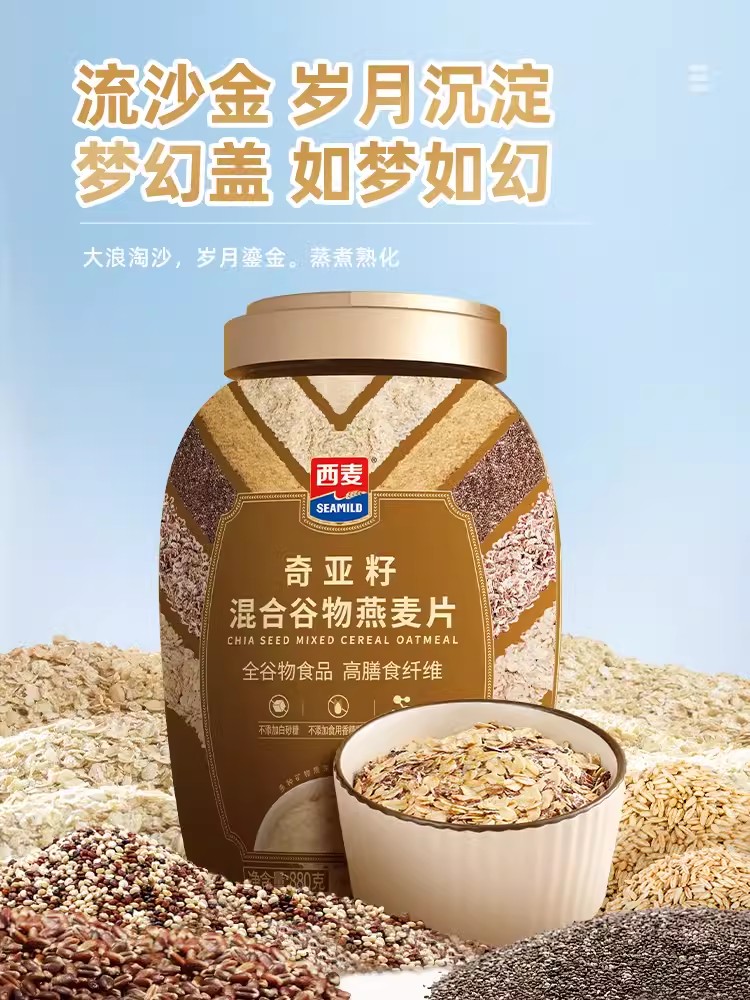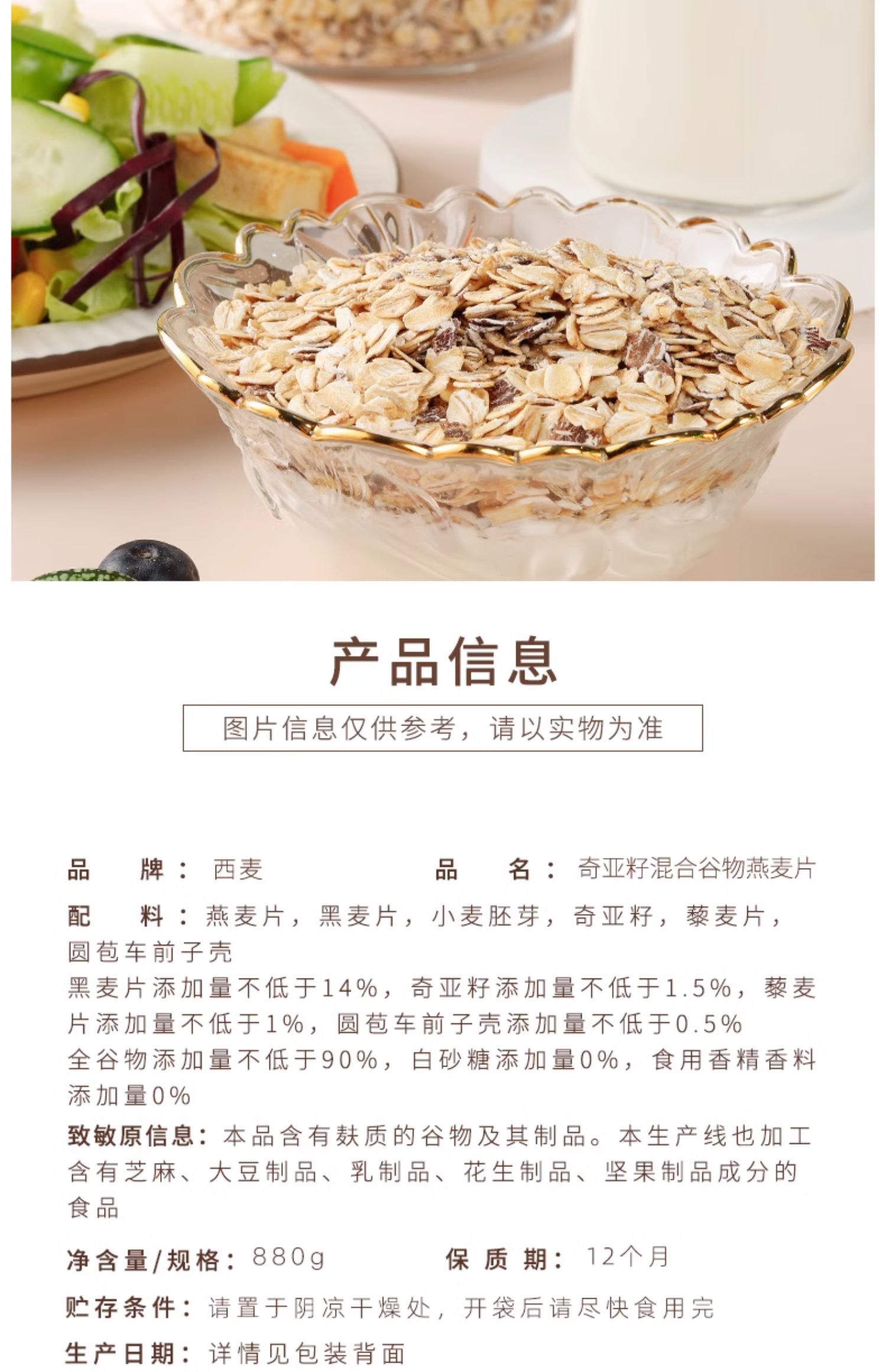 西麦奇亚籽混合燕麦片880g罐高蛋白质0添加蔗糖饱腹早餐