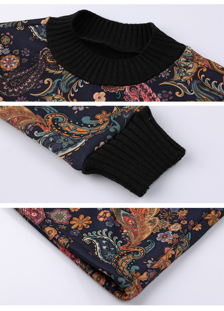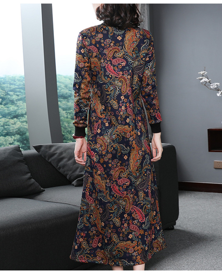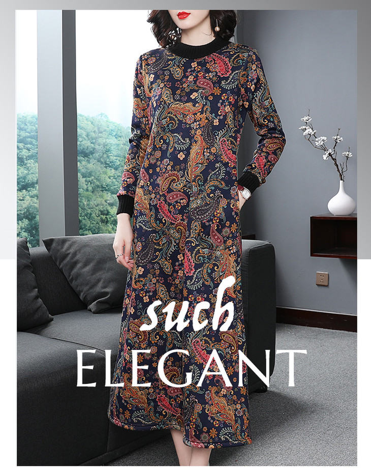 复古民族风,中长款印花加绒加厚连衣裙SM-18459