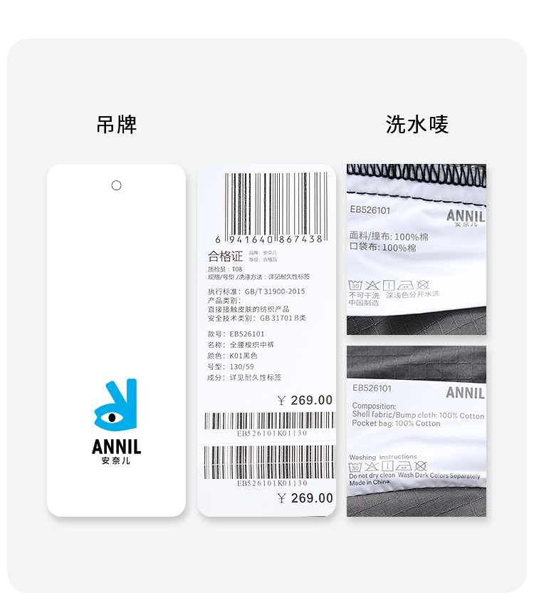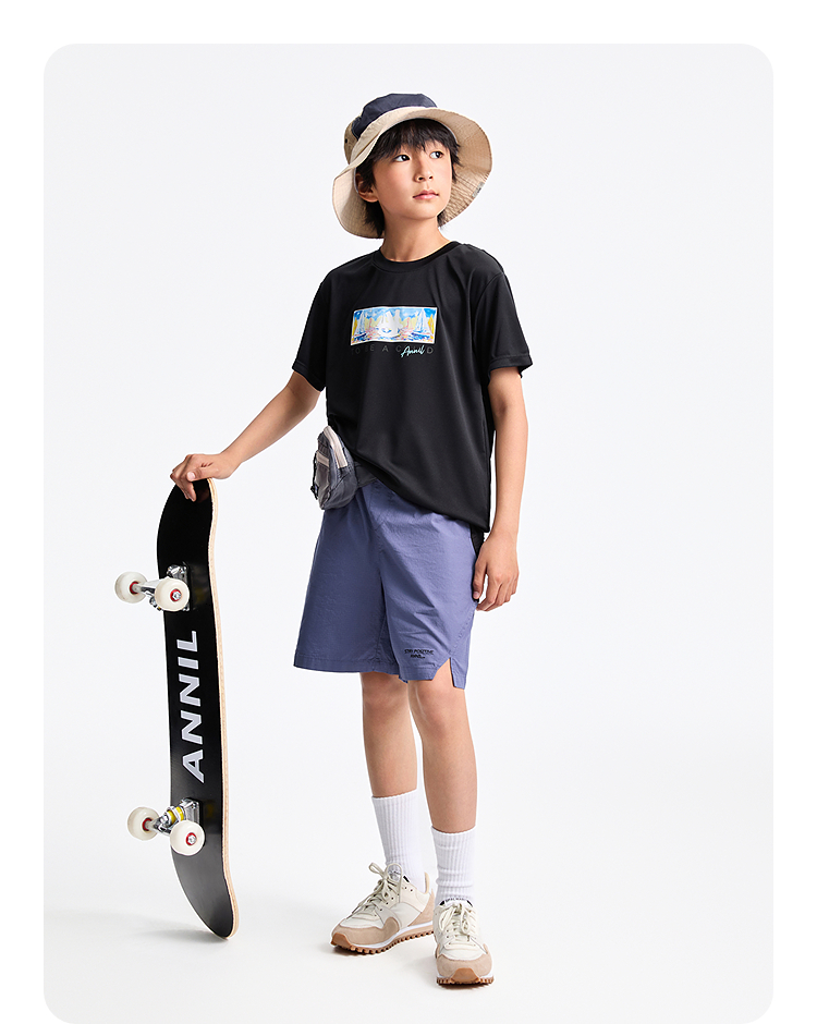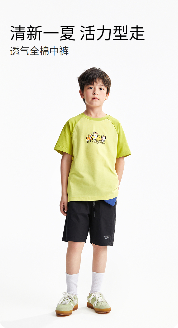 【全棉格纹提花】男童梭织中裤夏季新款安奈儿童装EB526101