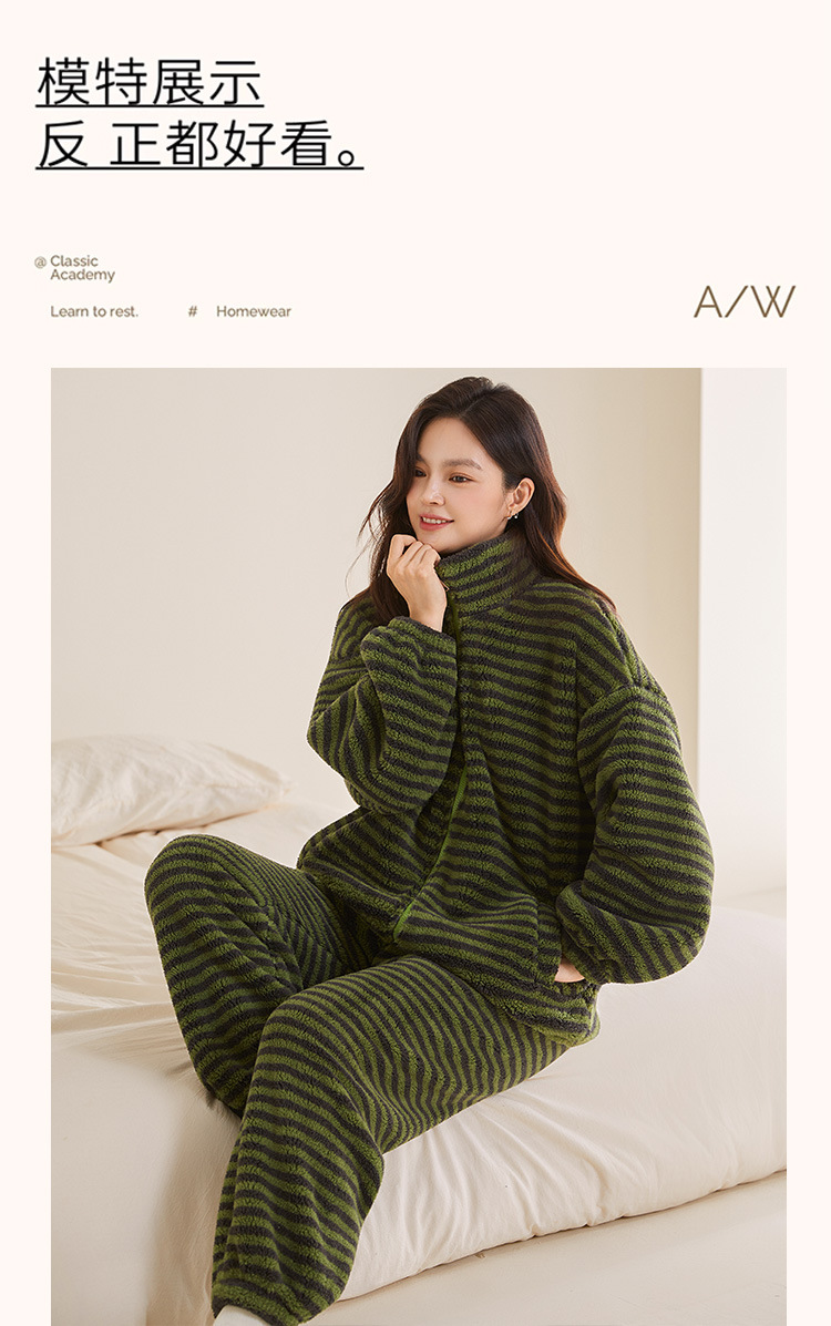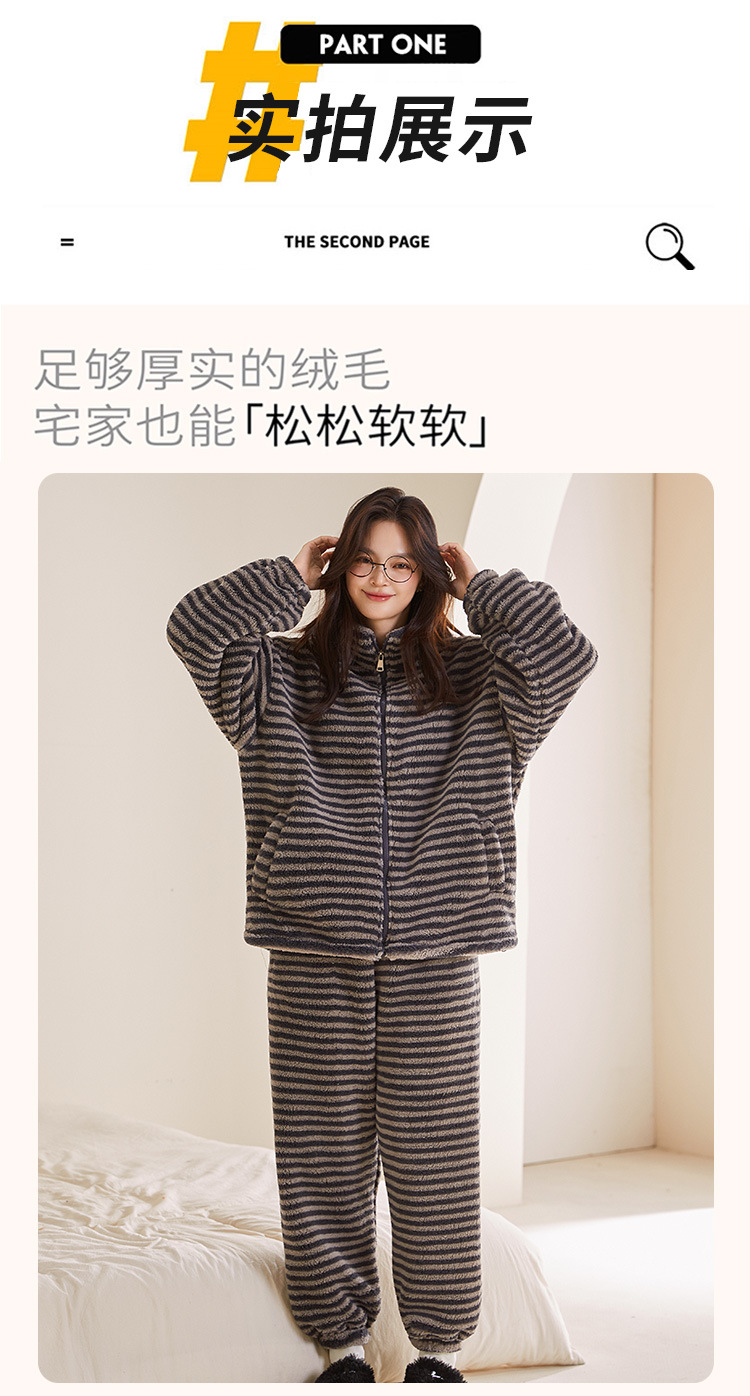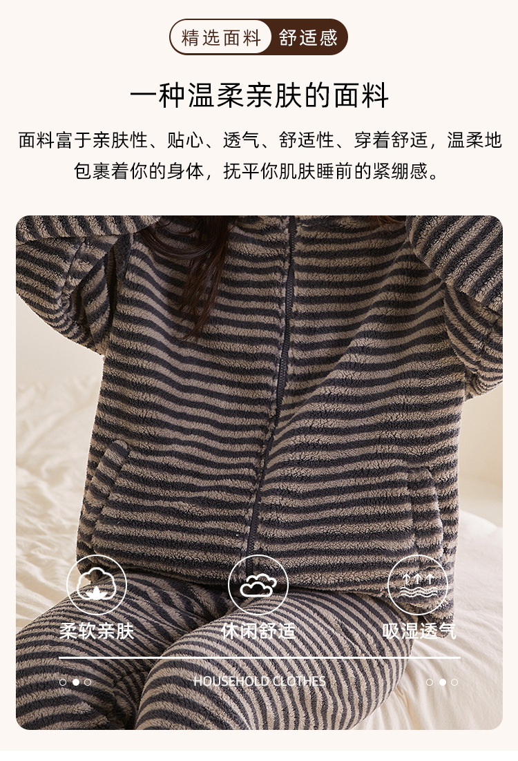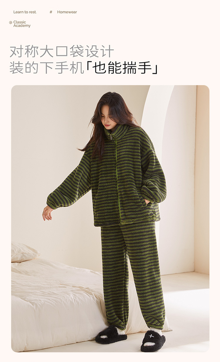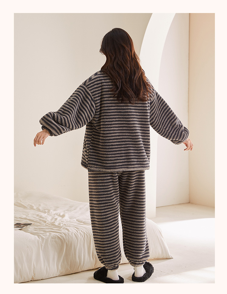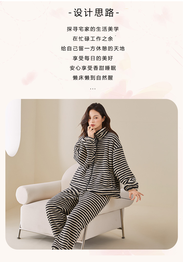雀说 高级感条纹睡衣女加绒加厚保暖家居服25005
