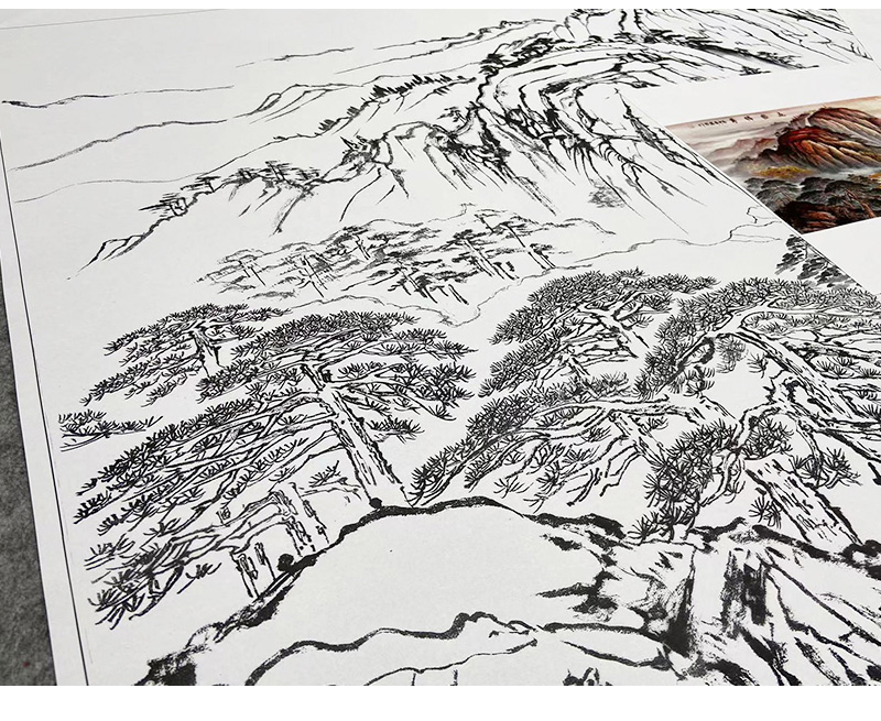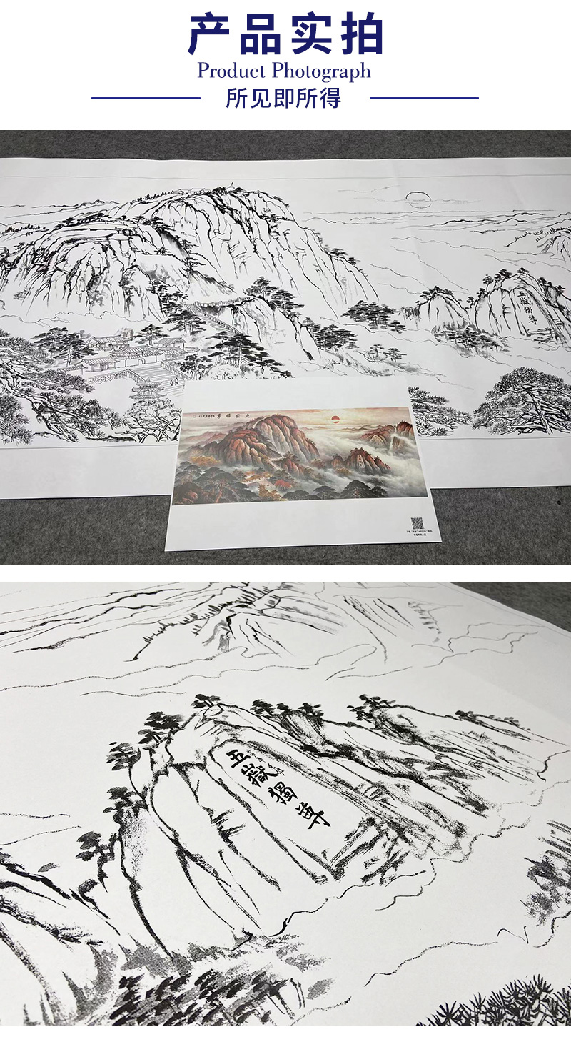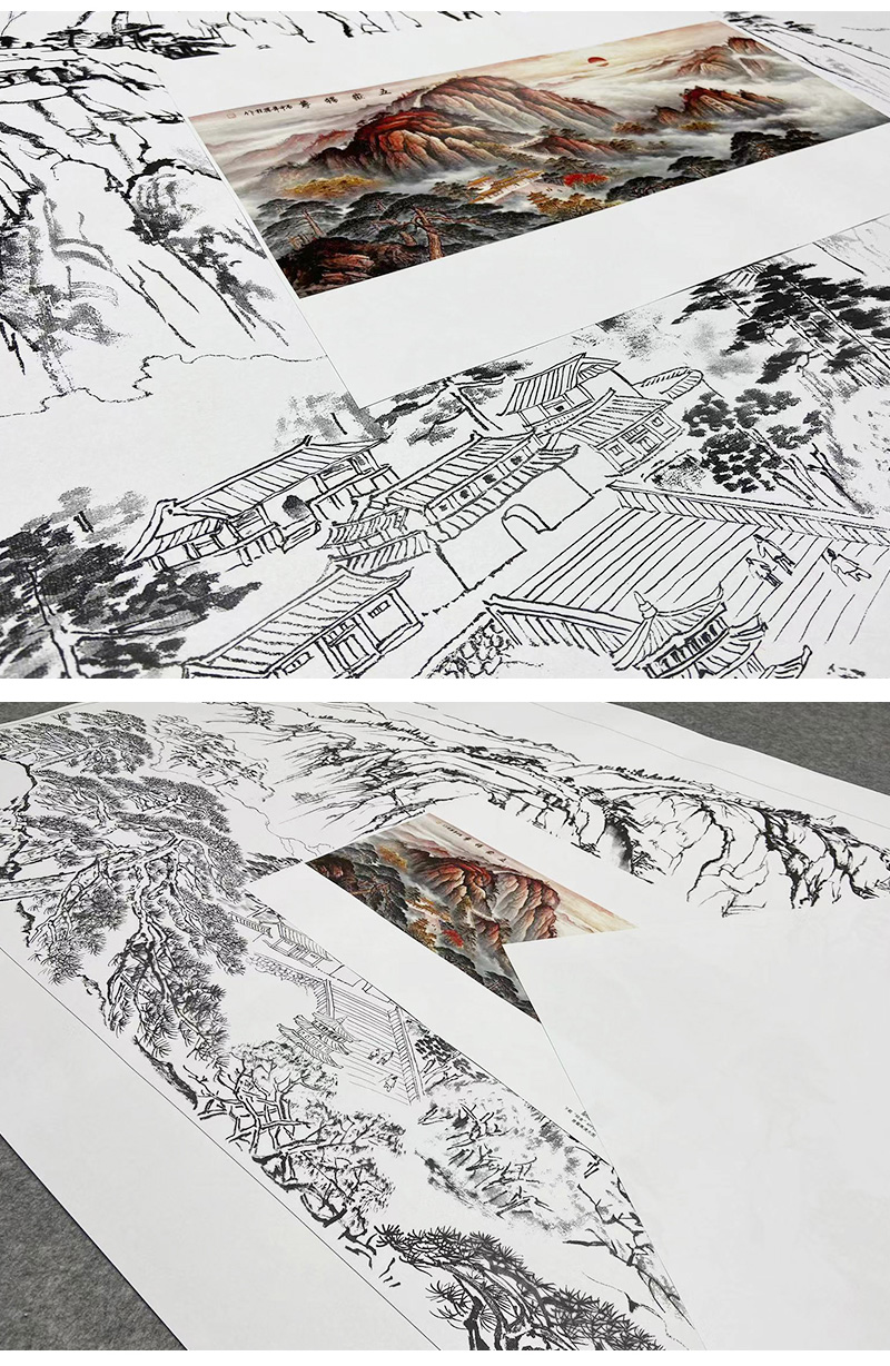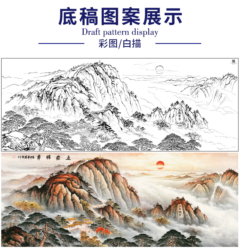 【大彩图】横幅工笔画白描底稿《泰山》临摹勾线山水底稿FS09