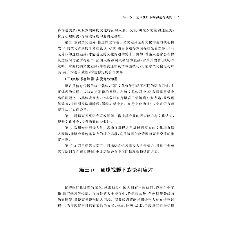 在高质量开放背景下,我国国际国内双循环新格局条件下,商务活动越来越频繁,跨文化沟通与谈判成为当今国际商务活动的重要环节。本书本着科学、全面、系统和实用的原则,基于不同国家经济和文化的差异,介绍了中国主要贸易伙伴国的经济和文化情况,从了解各国外交礼仪的视角,分析不同国家经济和文化,以及对华贸易情况;利用心理学、行为学和现代沟通工具的特点,分析个体沟通、商务沟通和管理沟通的方法、策略和行为。从个体、团队和组织三个视角,通过大量的案例将理论与实践相融合,介绍对不同商务活动情境下,解析在国际商务谈判中如何综合分析双方的思维方式、价值观念、利益意识、法律意识与关系意识以及对谈判的影响,从而制定出合理的谈判策略。