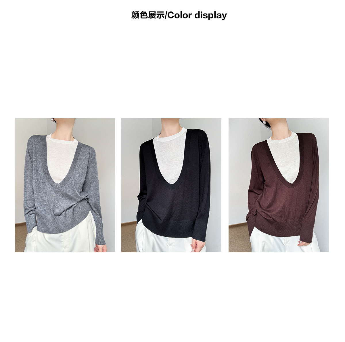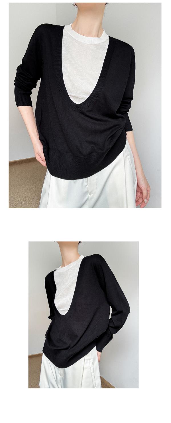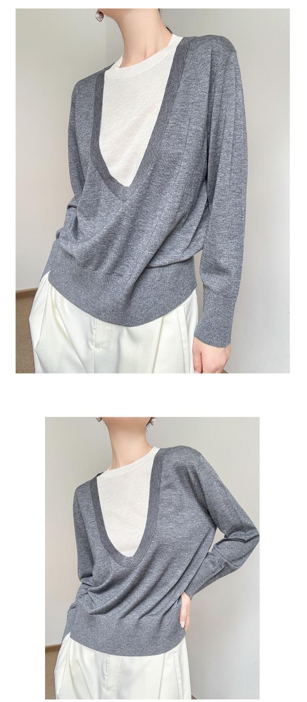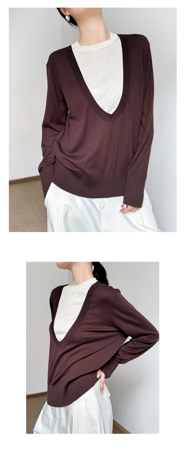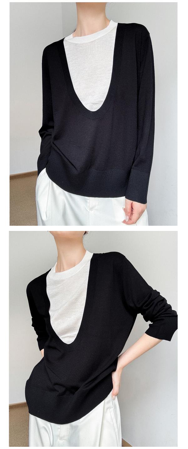 奥篇【1920S系列】撞色假两件U领式混纺羊毛针织衫