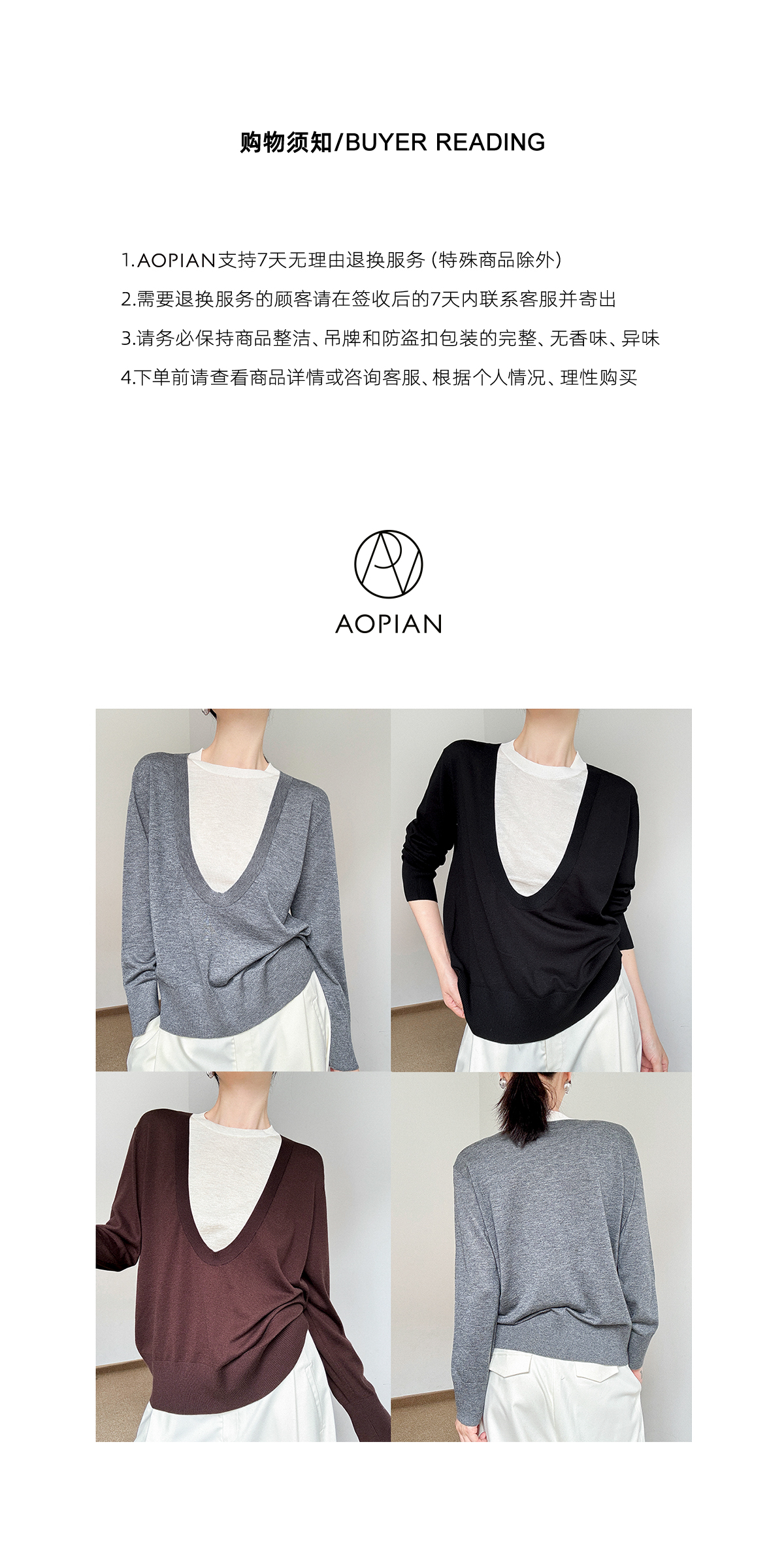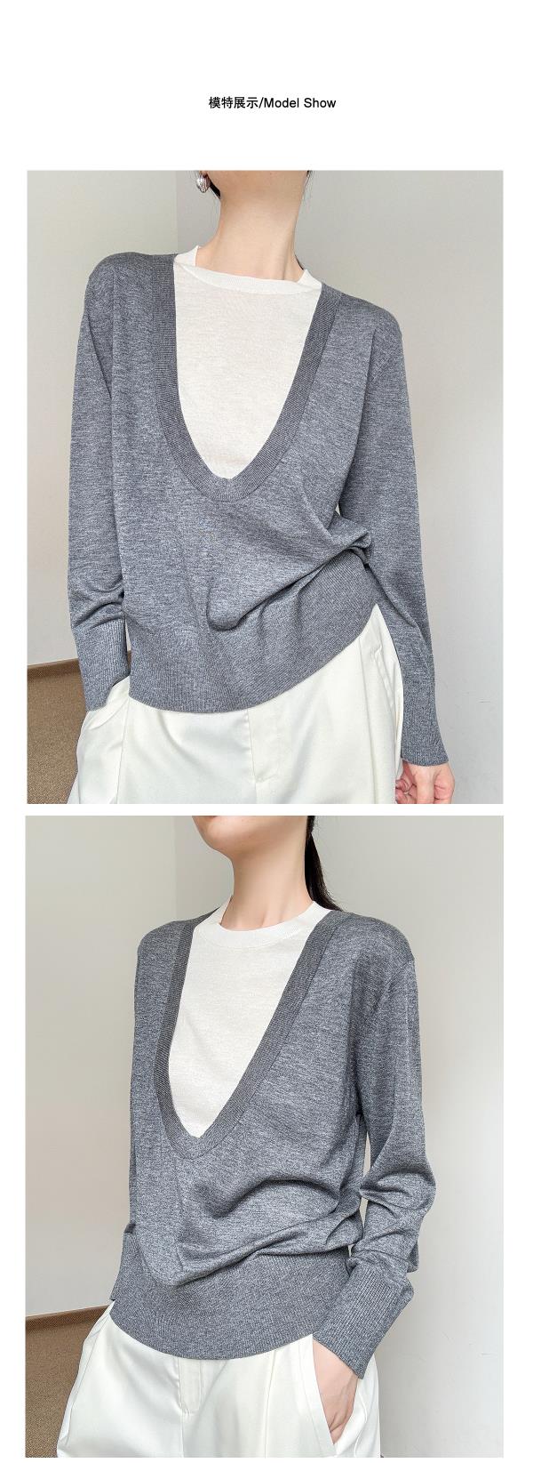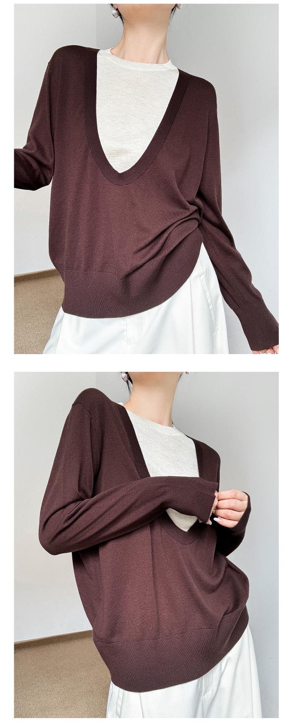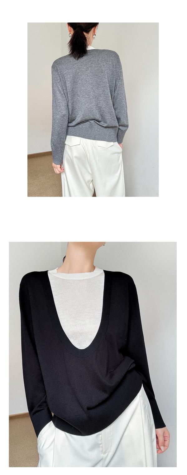 奥篇【1920S系列】撞色假两件U领式混纺羊毛针织衫