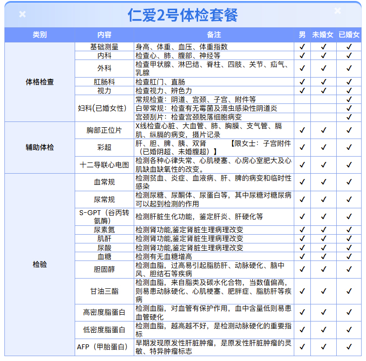 【中青年|基础】含胸部DR+五彩超+子宫/阴超(女)+血脂+肾功能+肿瘤一项 02
