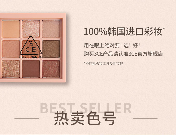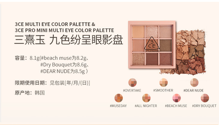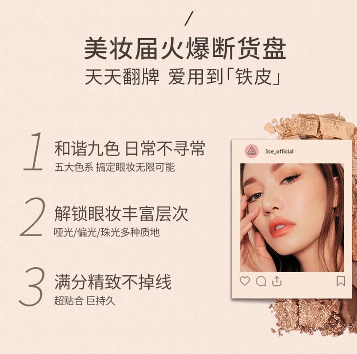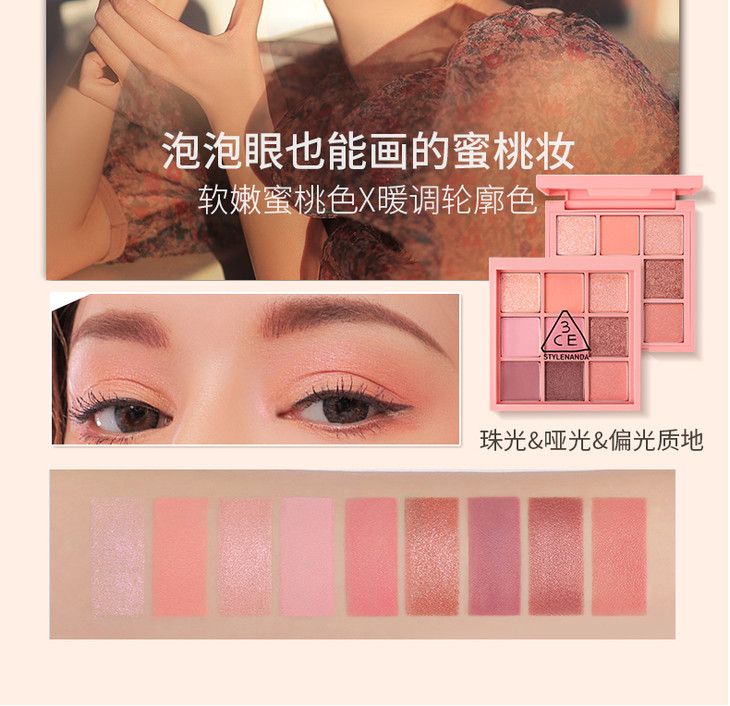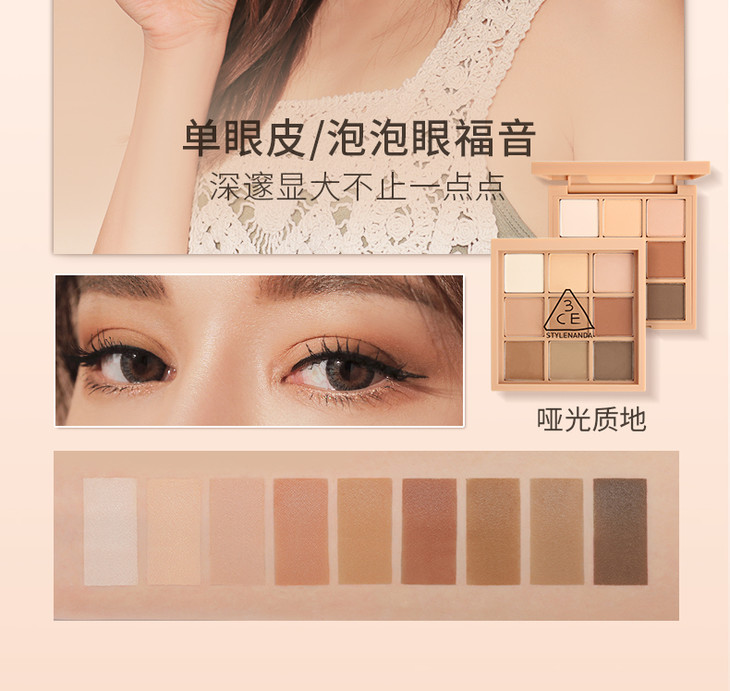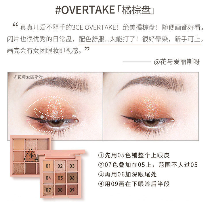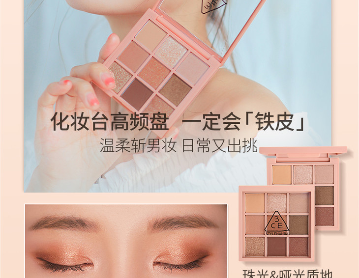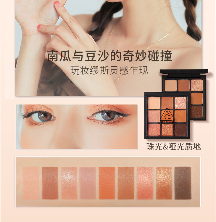 3CE九宫格眼影overtake南瓜珠光彩妆盘哑光闪片