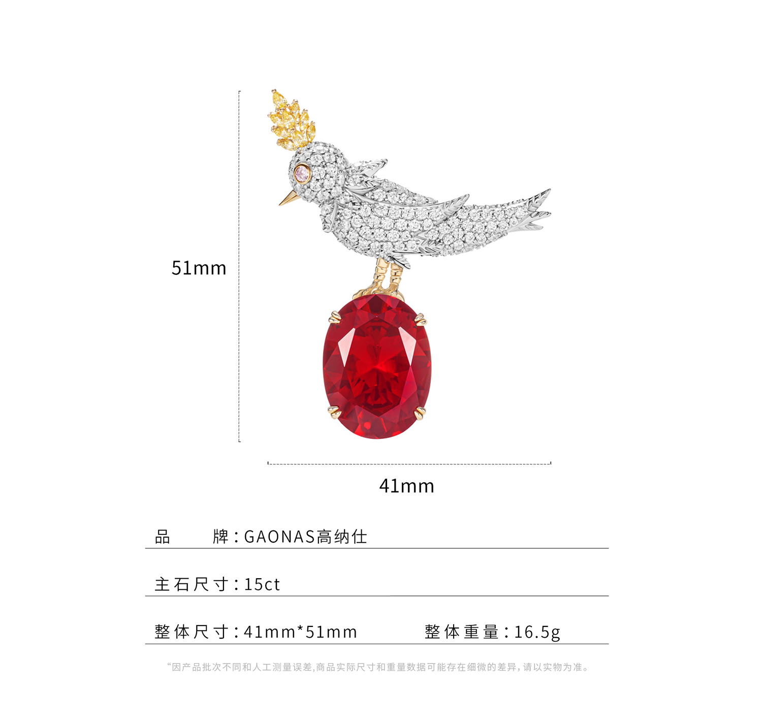 GAONAS 传奇皇冠鸟 经典贵气红色胸针11392ZR