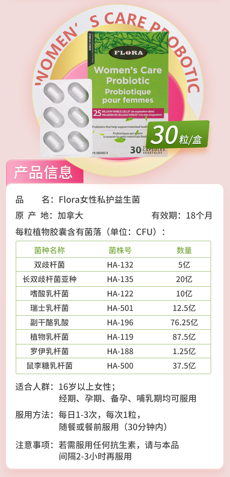 【FLORA】加拿大富兰 女性私护益生菌30粒/瓶