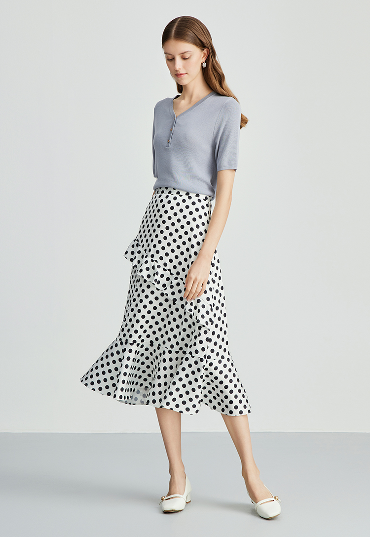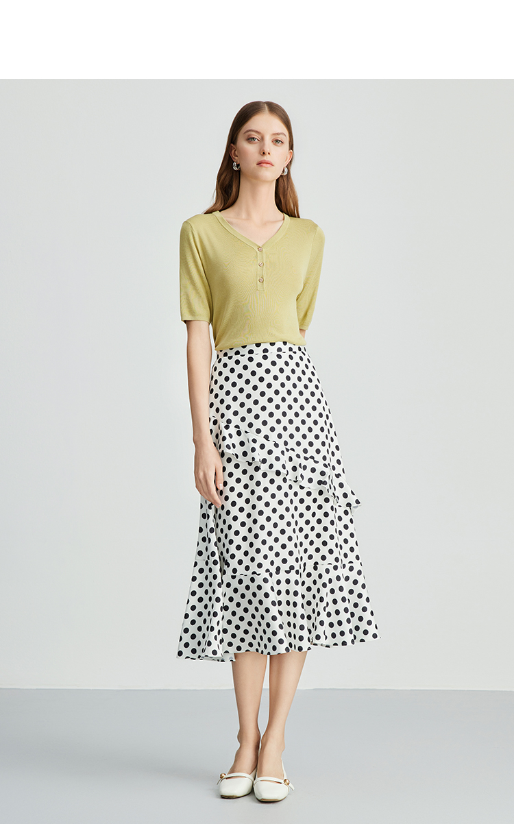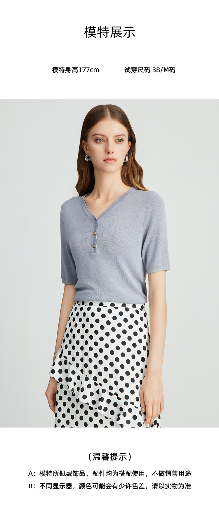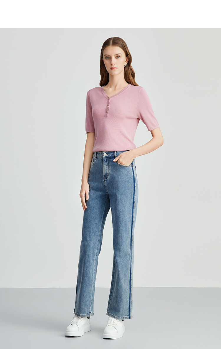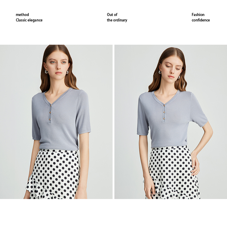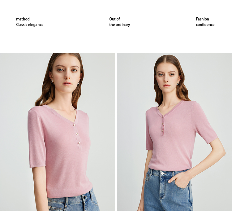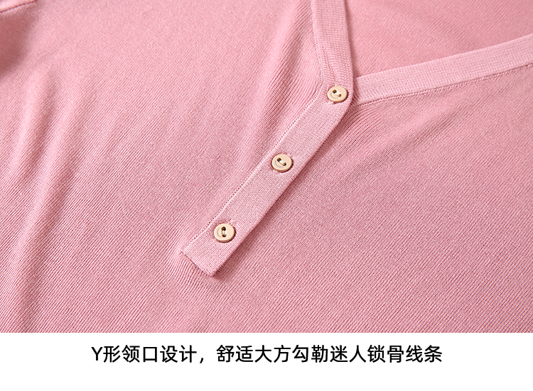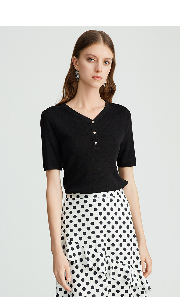 EITIE爱特爱夏季新款舒适轻薄莱赛尔蚕丝短袖V领纯色针织T恤B2401330