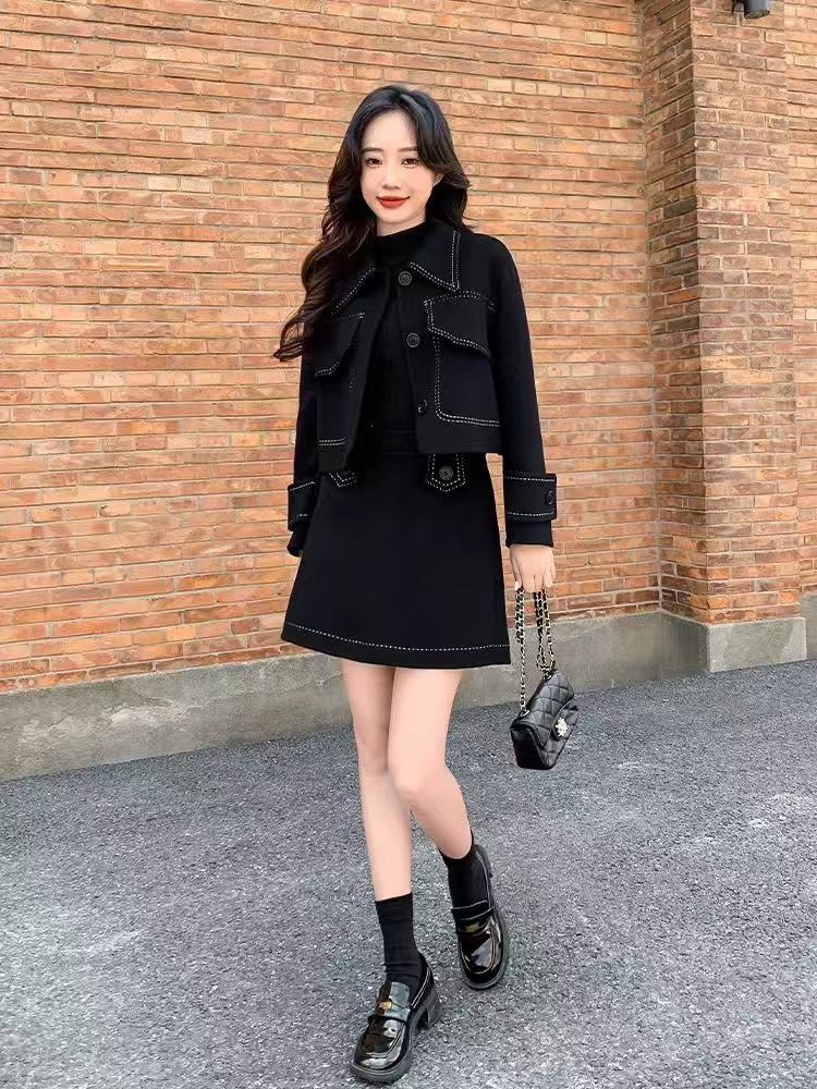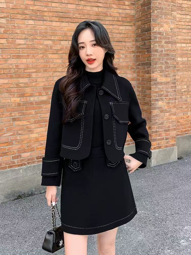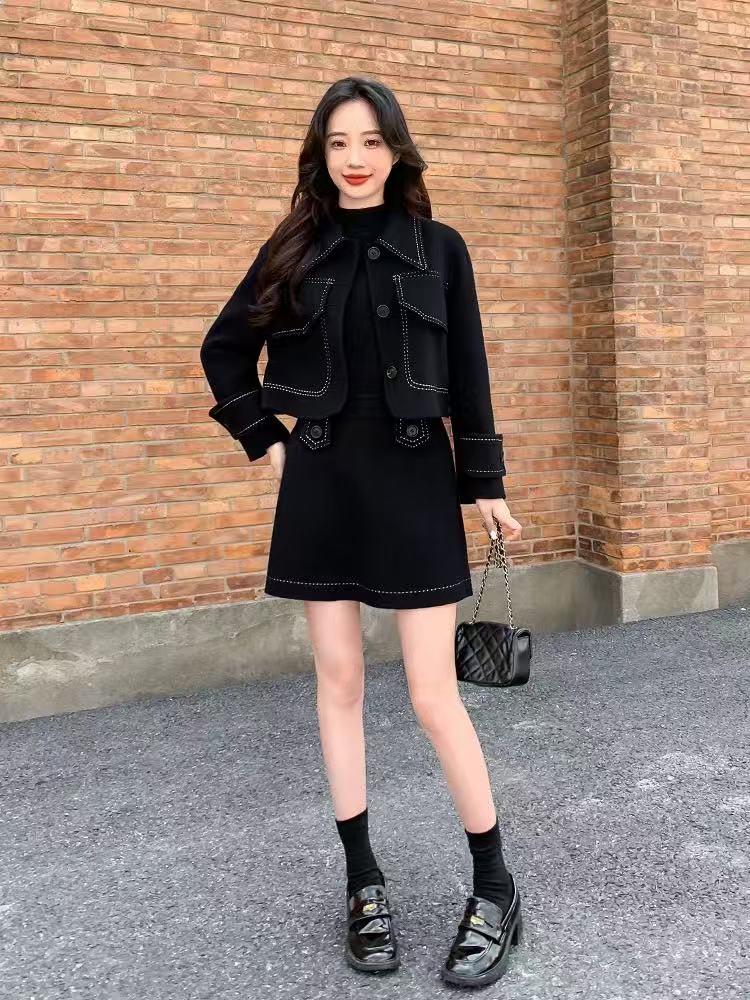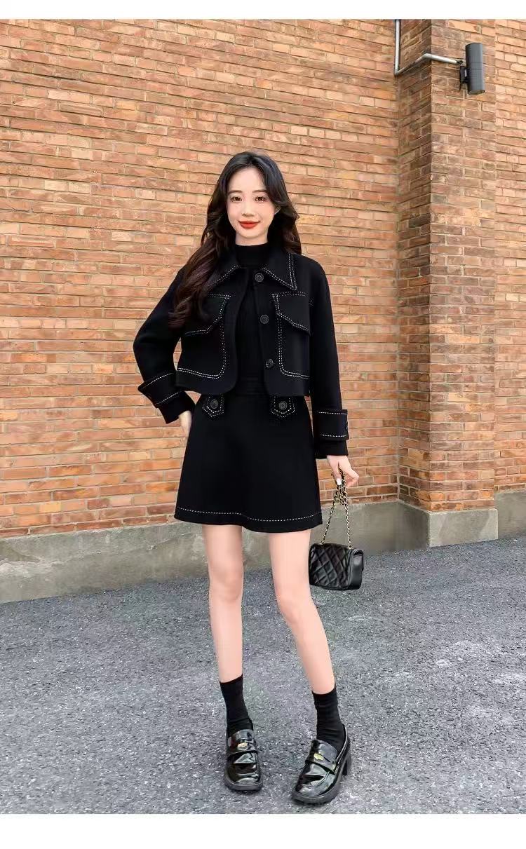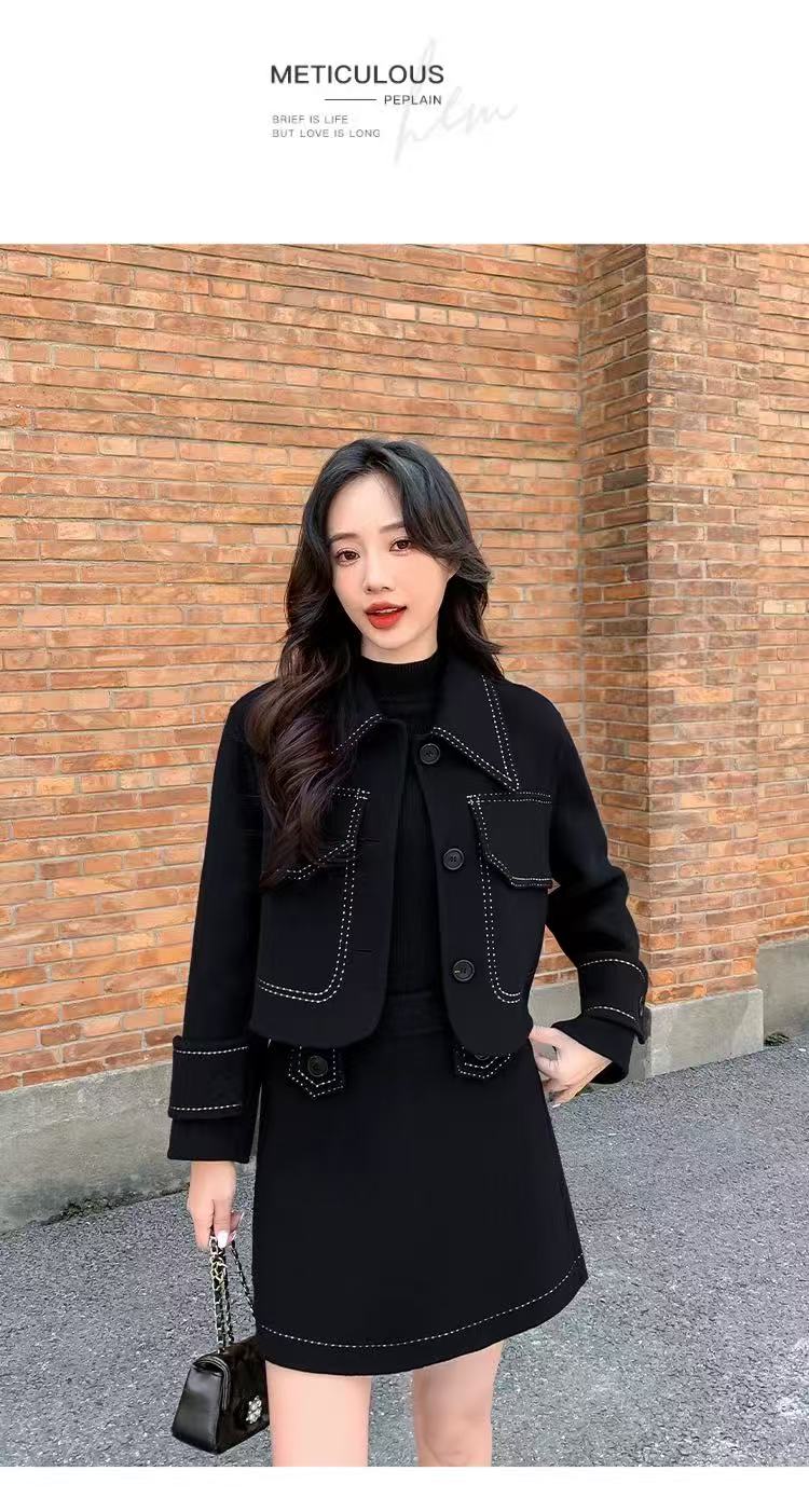 【高端系列】手工定制T06套装65%羊毛双面尼上衣➕半裙-喜出