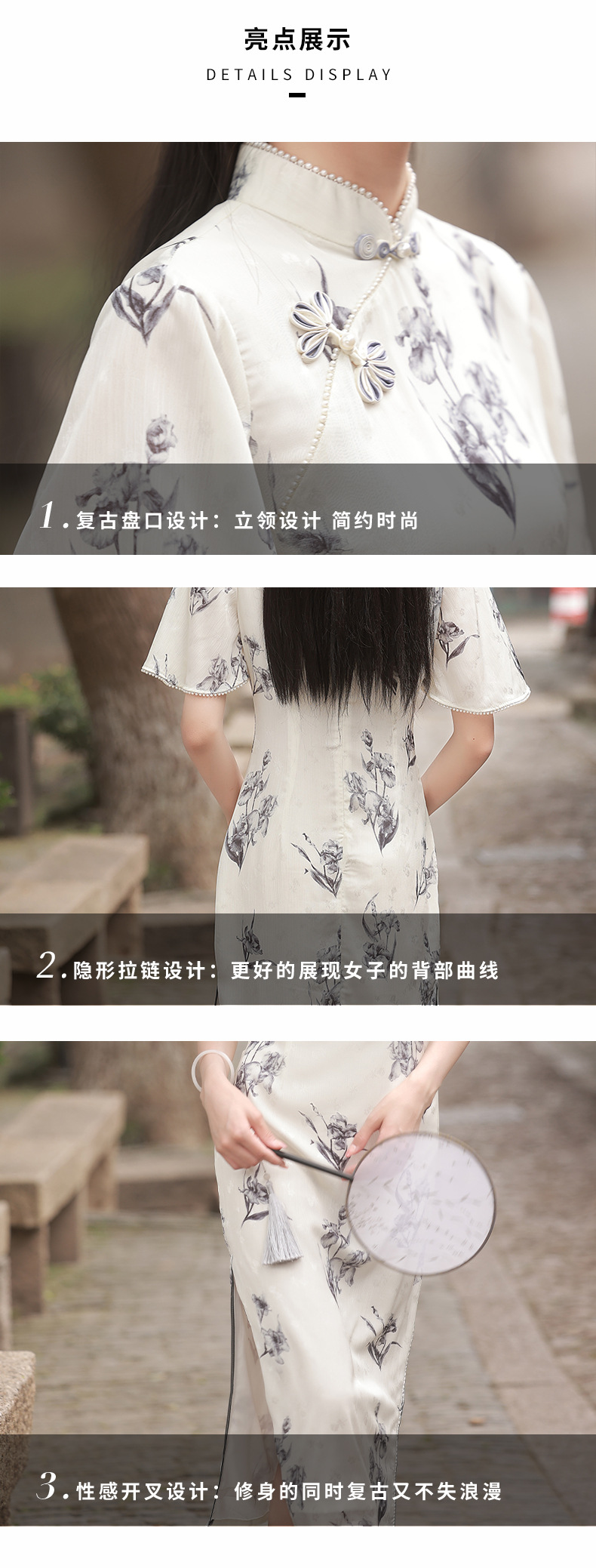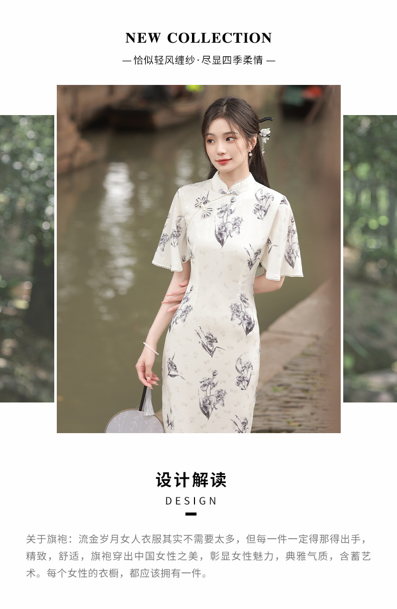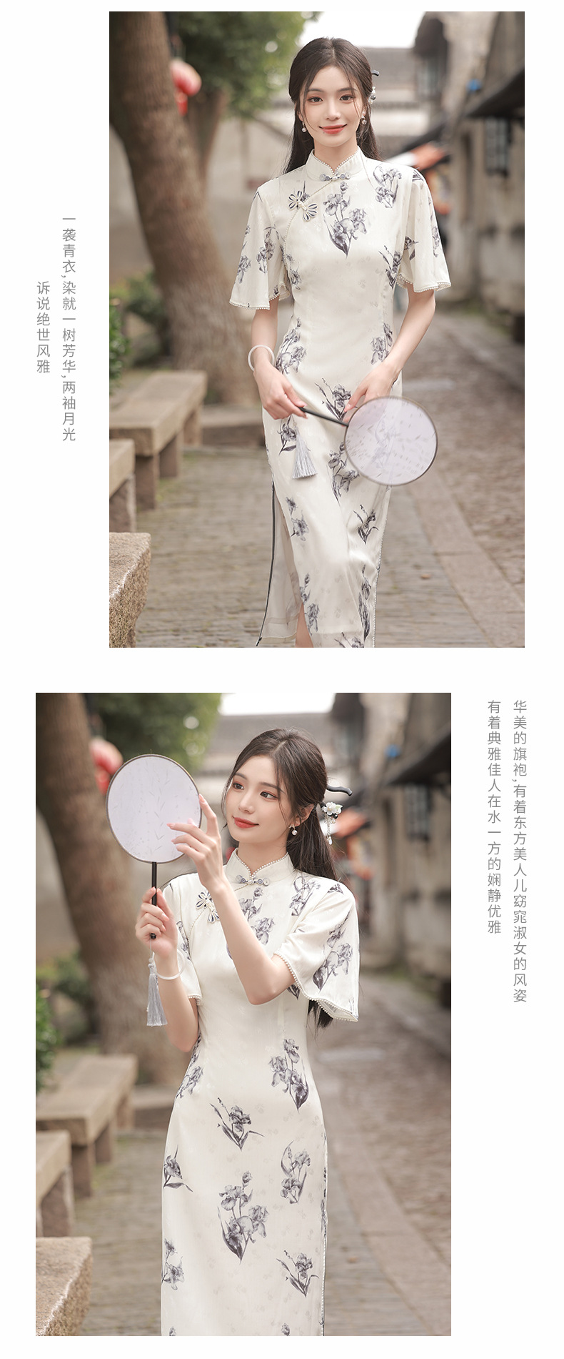 优雅修身,春夏新款改良短袖少女郁金香长款倒大袖旗袍YG-2270