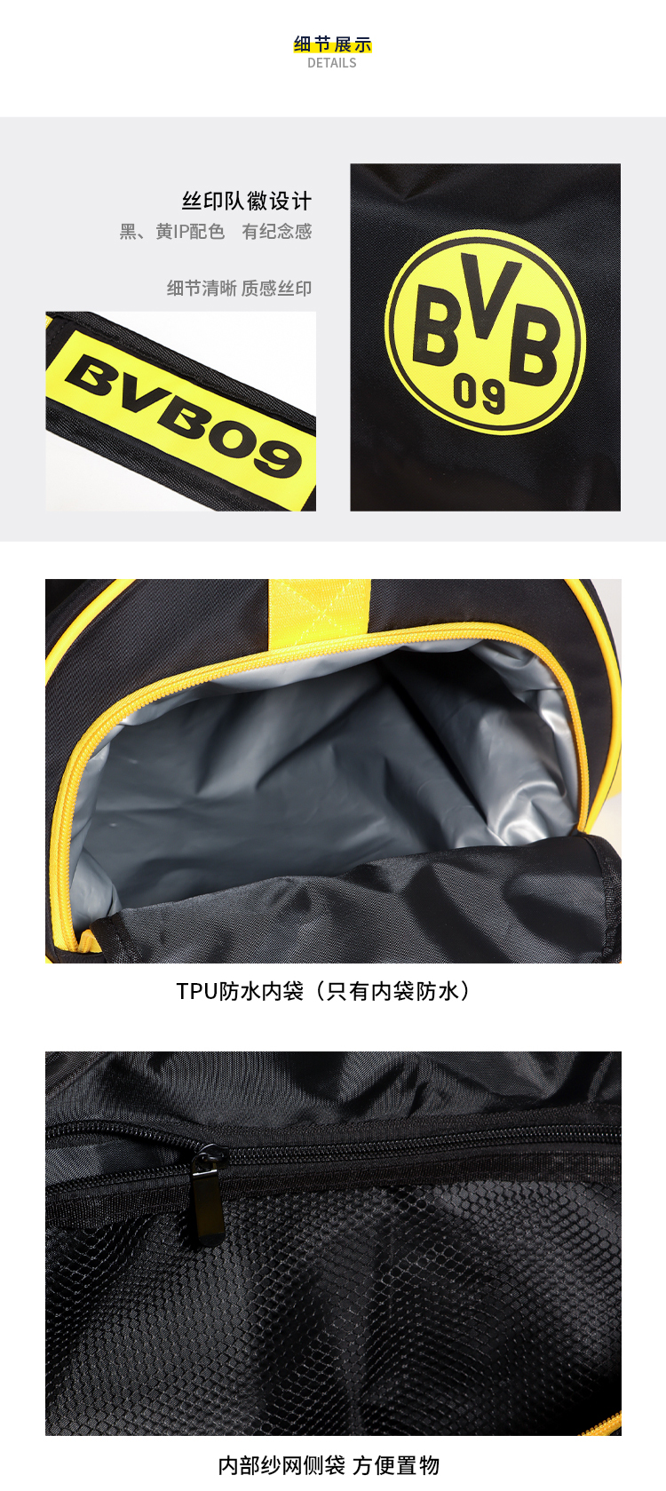 【官方正版】多特蒙德足球俱乐部|BVB大容量运动健身包双肩包球迷