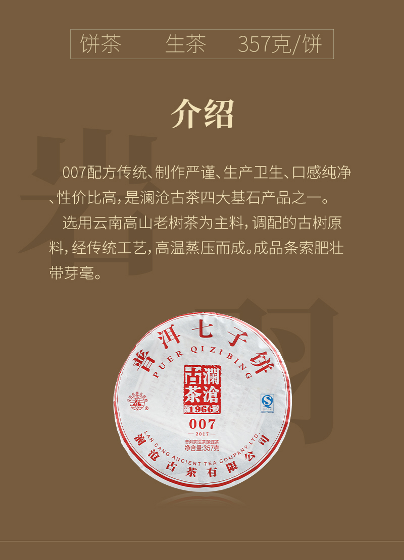 【茶礼】澜沧古茶2018年007大饼生茶普洱茶云南茶叶 配红色窗花礼盒
