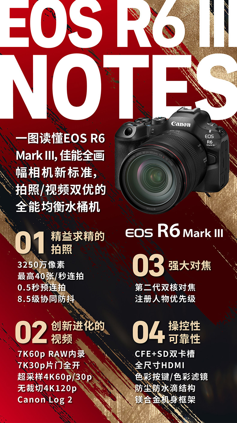 全新国行丨佳能R63微单相机 4K视频拍摄 专业级vlog摄影器材r6三代全画幅微单机身