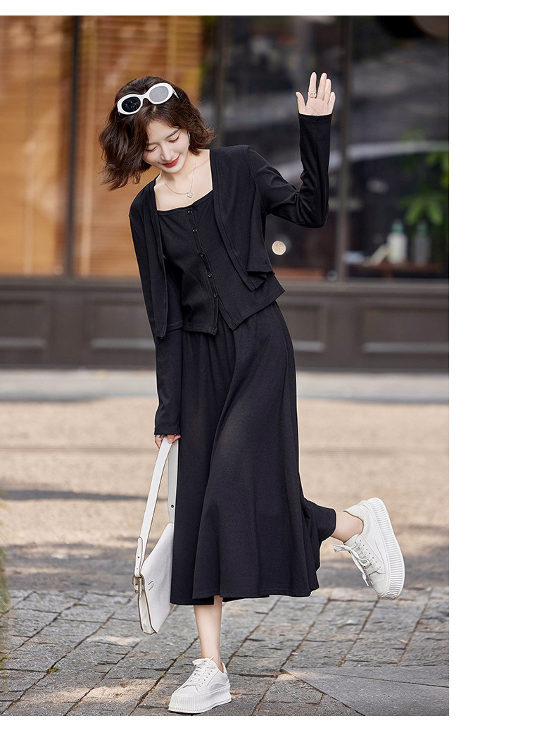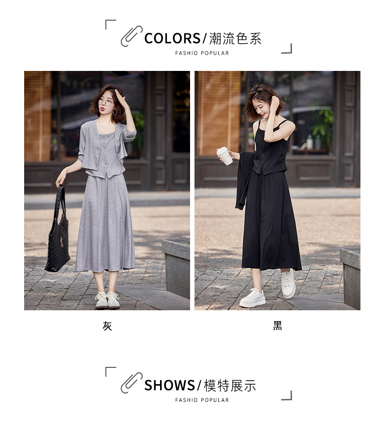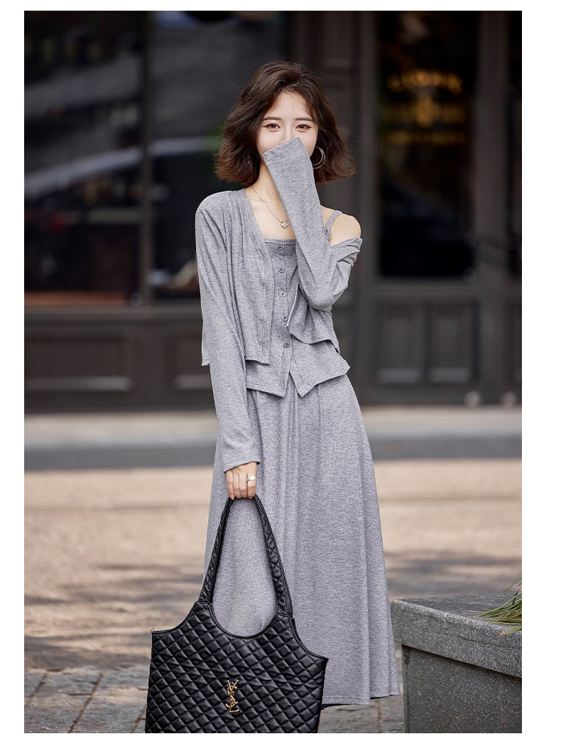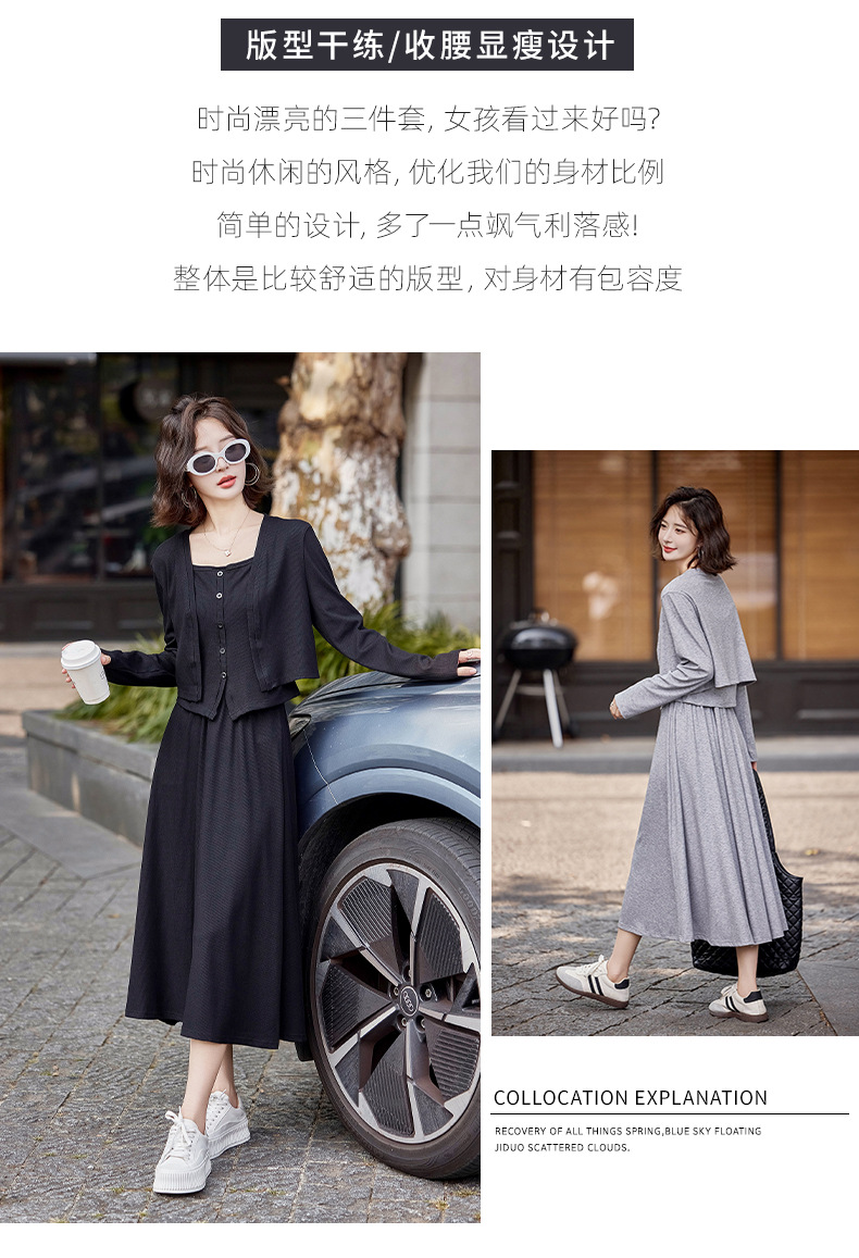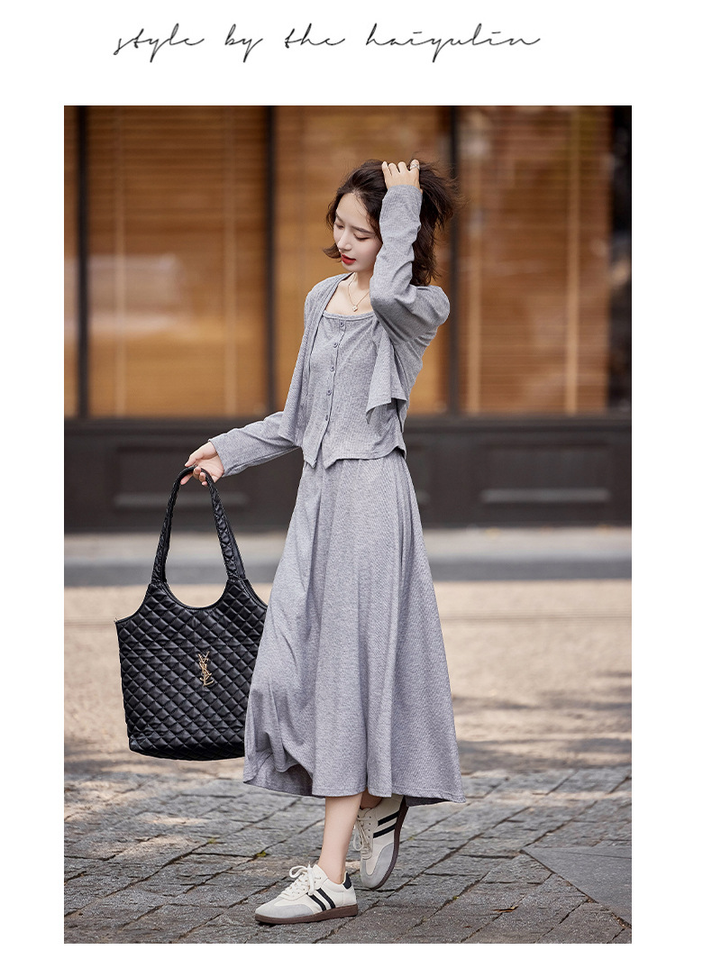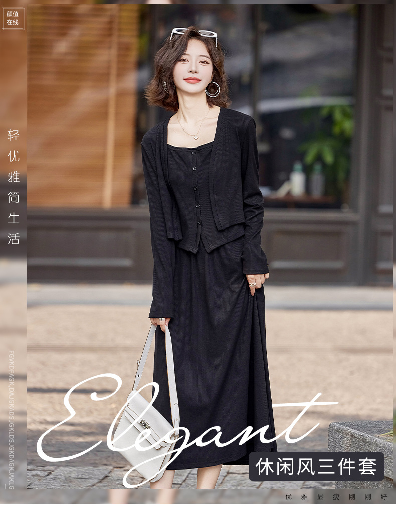 时尚纯色,针织开衫+吊带+半裙三件套HR-CPYY8089