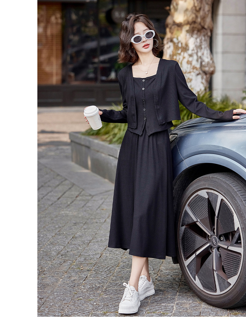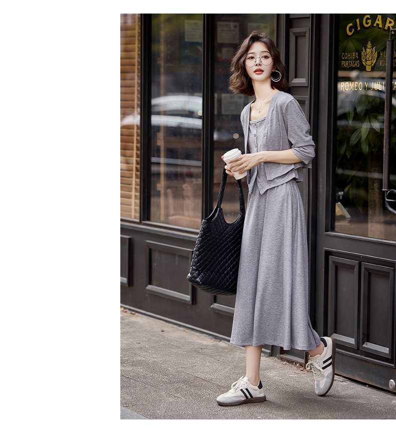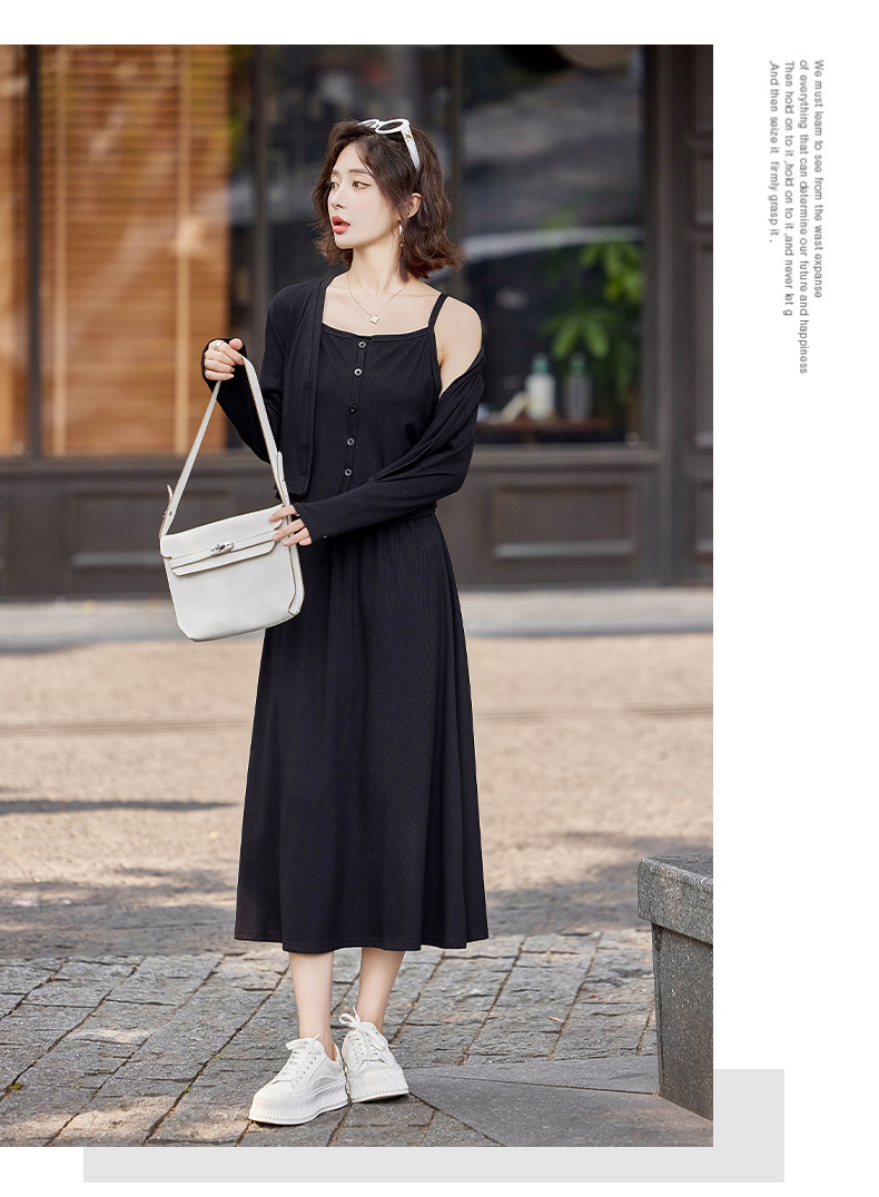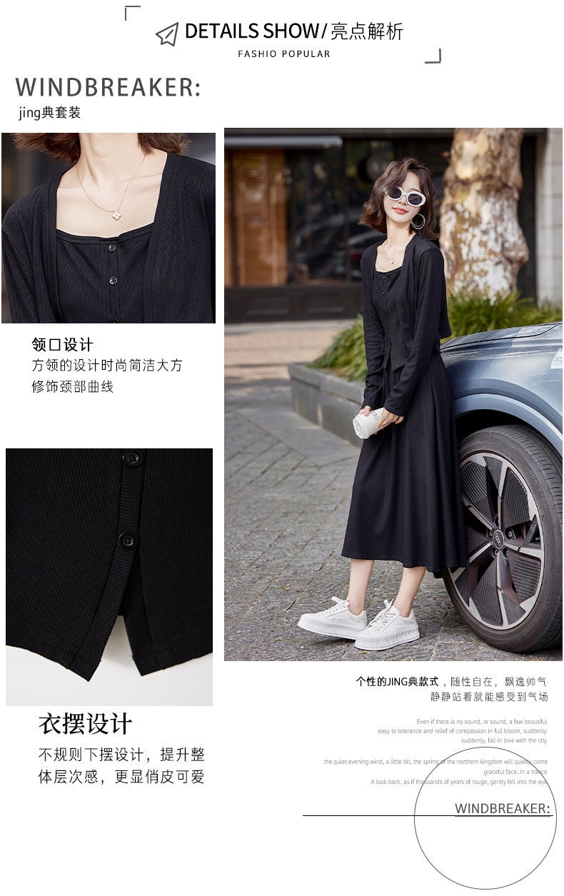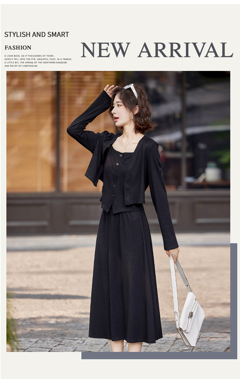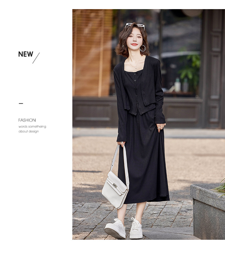 时尚纯色,针织开衫+吊带+半裙三件套HR-CPYY8089
