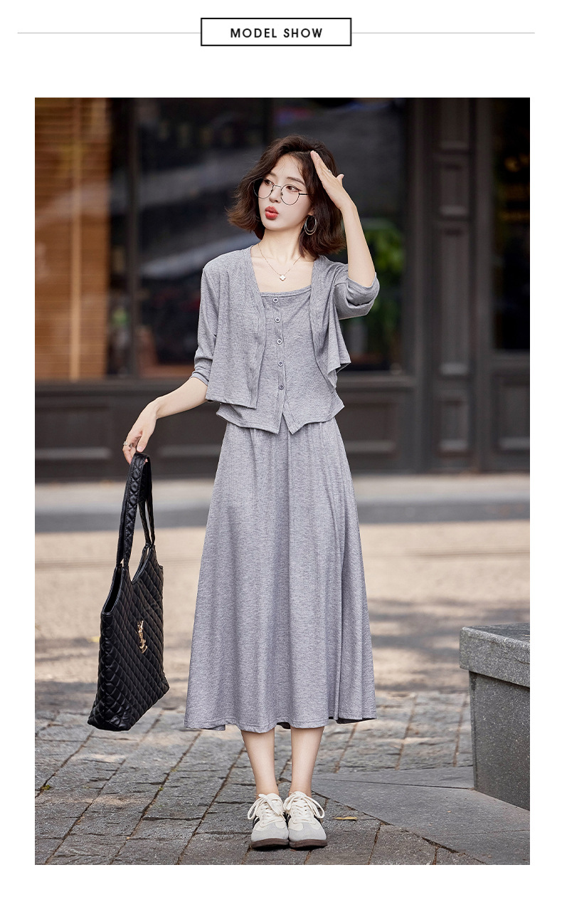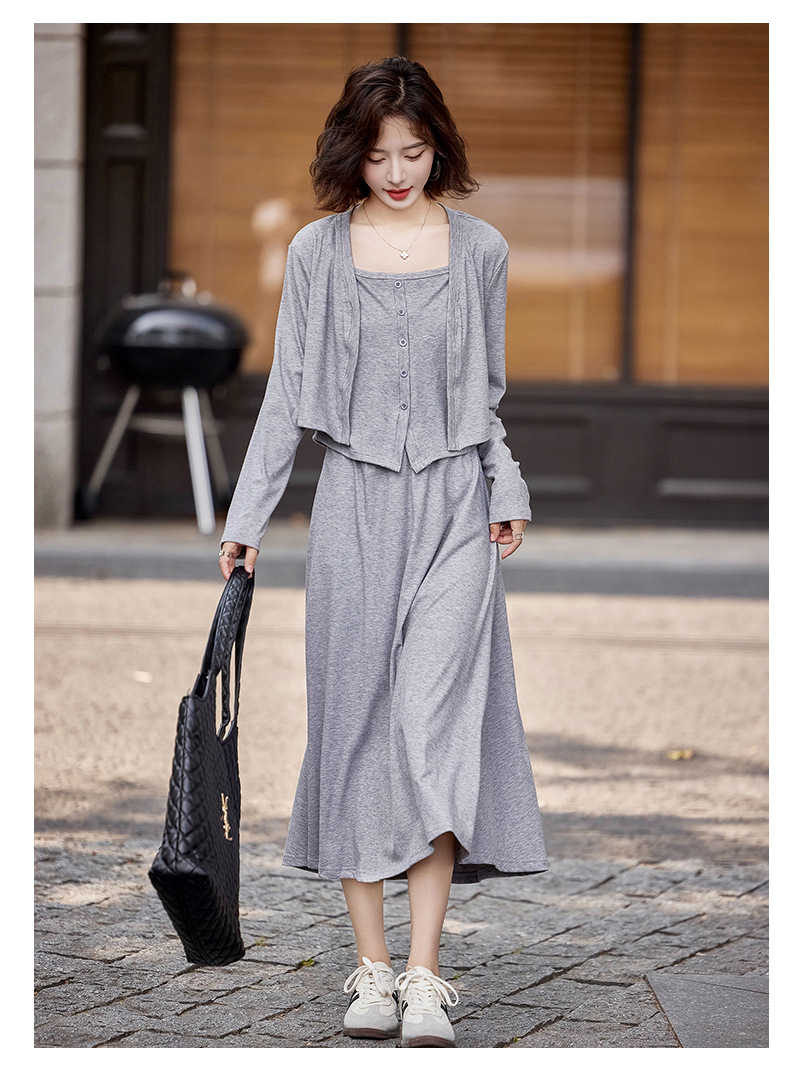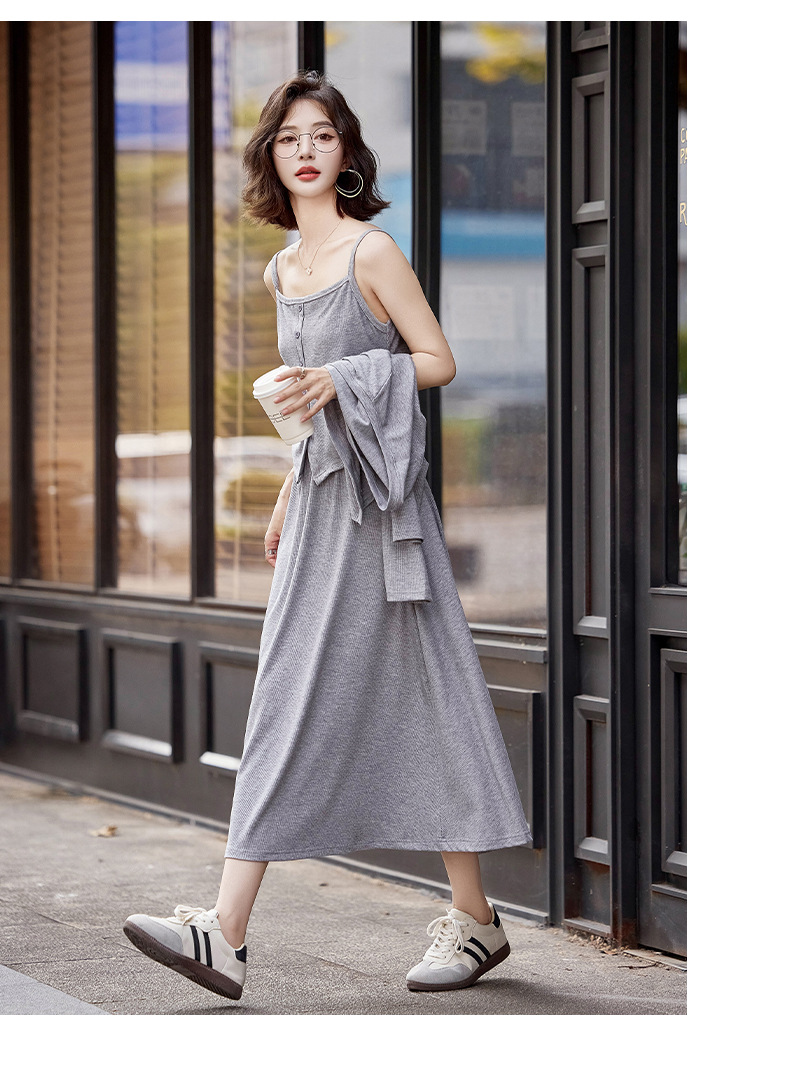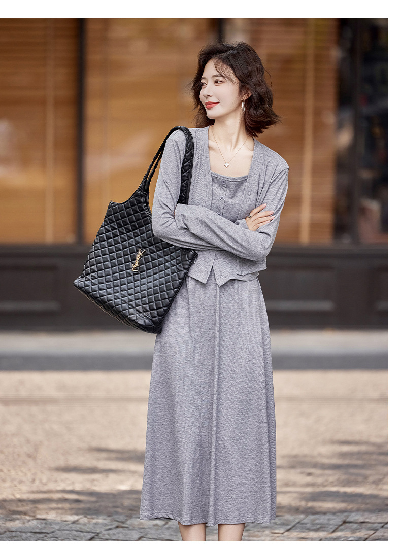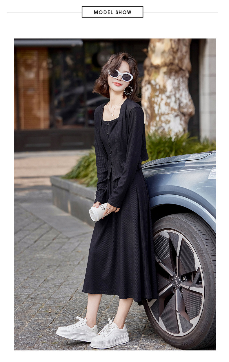 时尚纯色,针织开衫+吊带+半裙三件套HR-CPYY8089