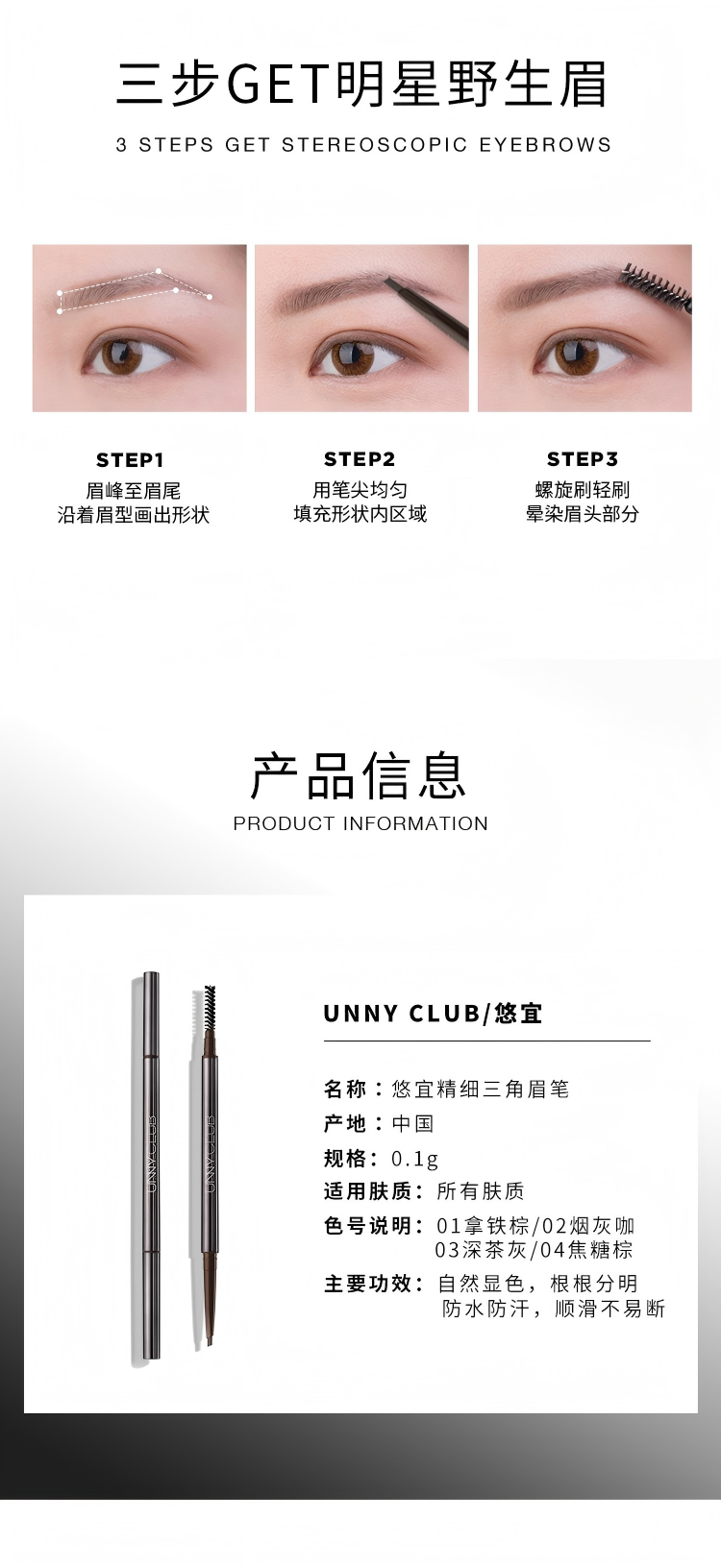 优惠两支装!【UNNY 精细小三角眉笔】防水防汗 持久不脱色 精细描绘 根根分明 1.5MM精细小砍刀 80吨高压固型 不易断芯