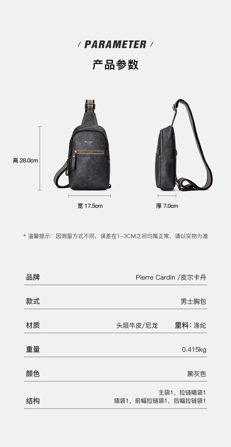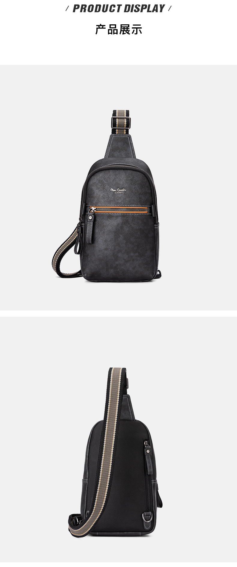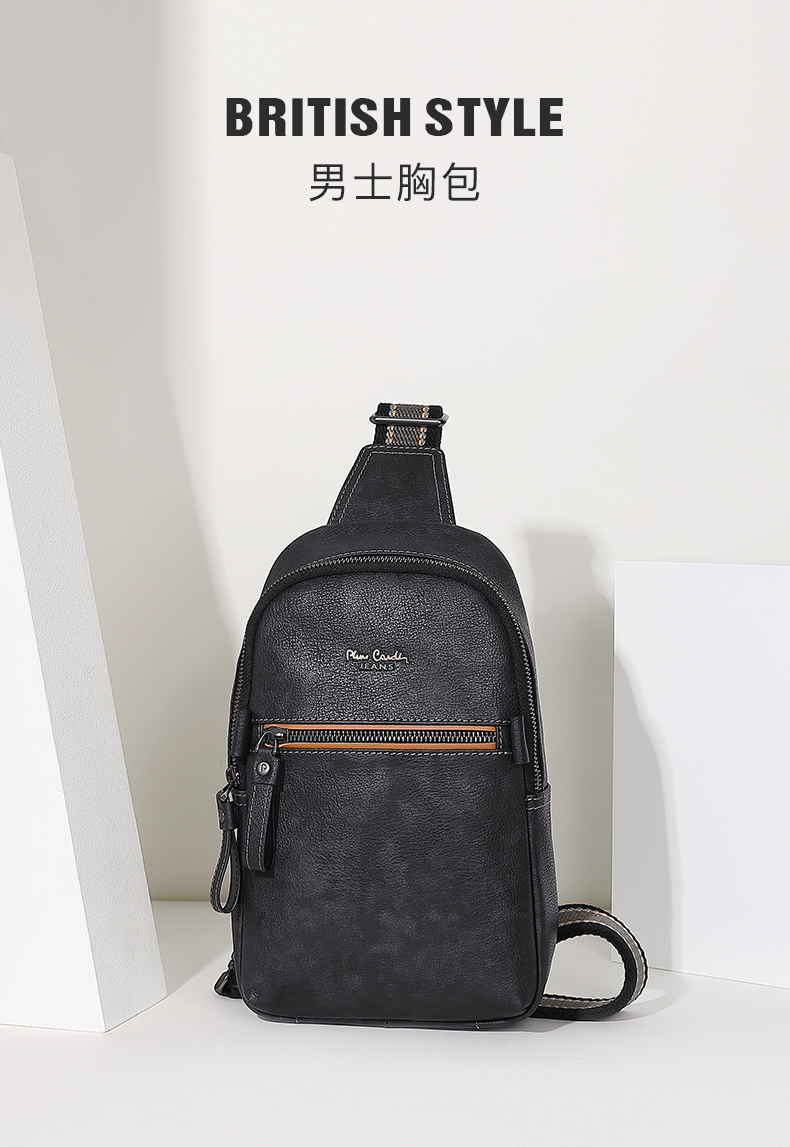 皮尔卡丹男士胸包商务简约男士真皮胸前包时尚潮流牛皮单肩斜挎包