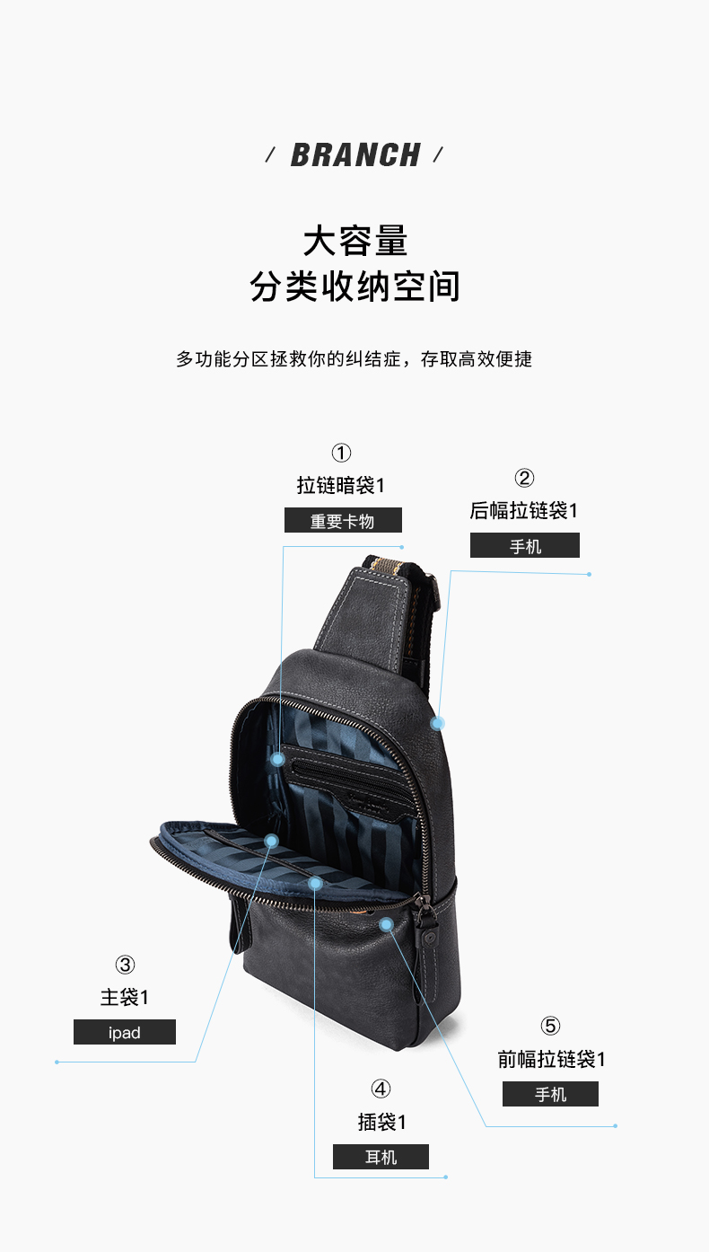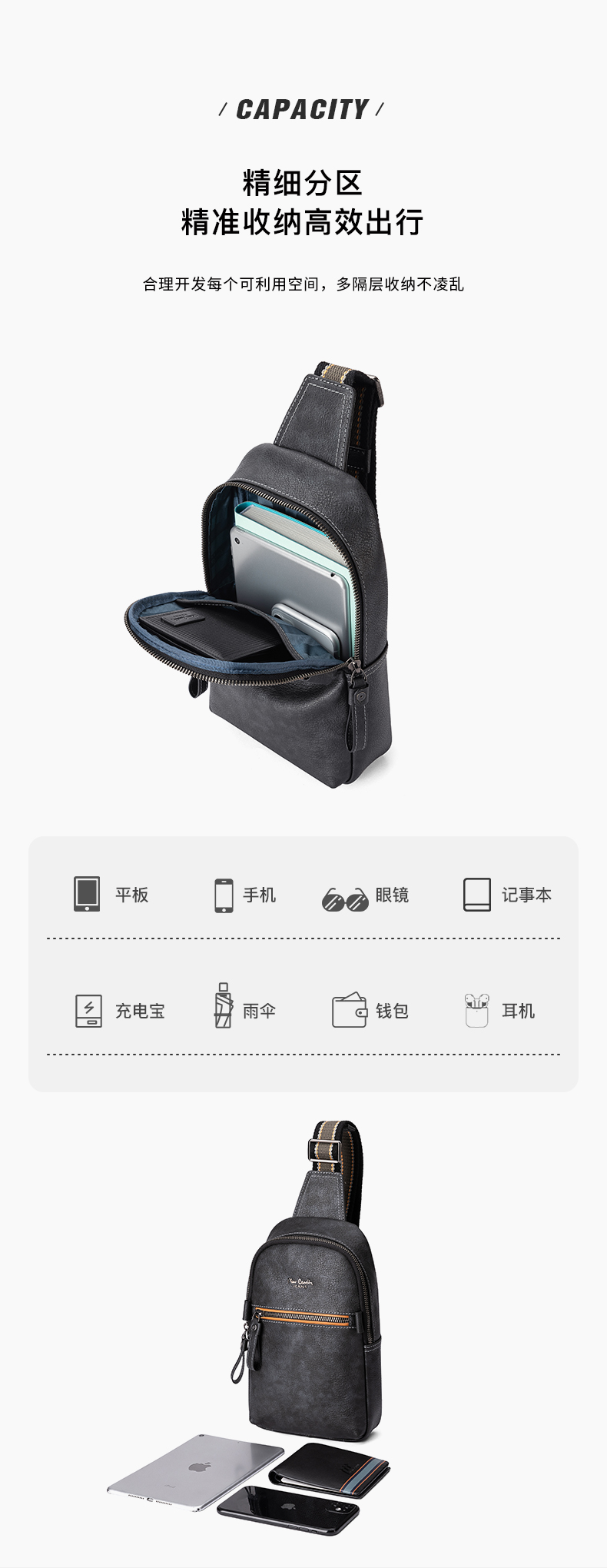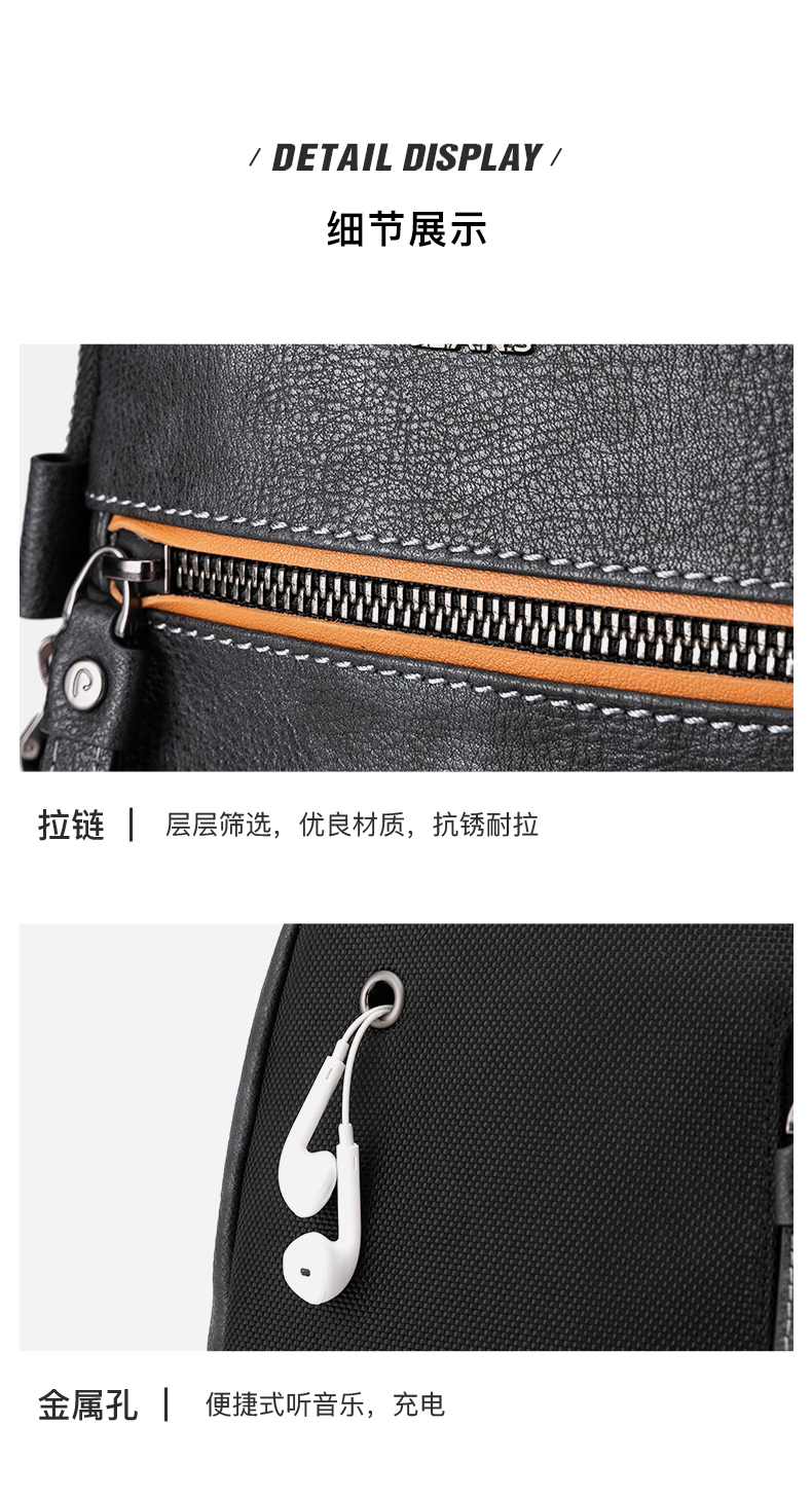 皮尔卡丹男士胸包商务简约男士真皮胸前包时尚潮流牛皮单肩斜挎包