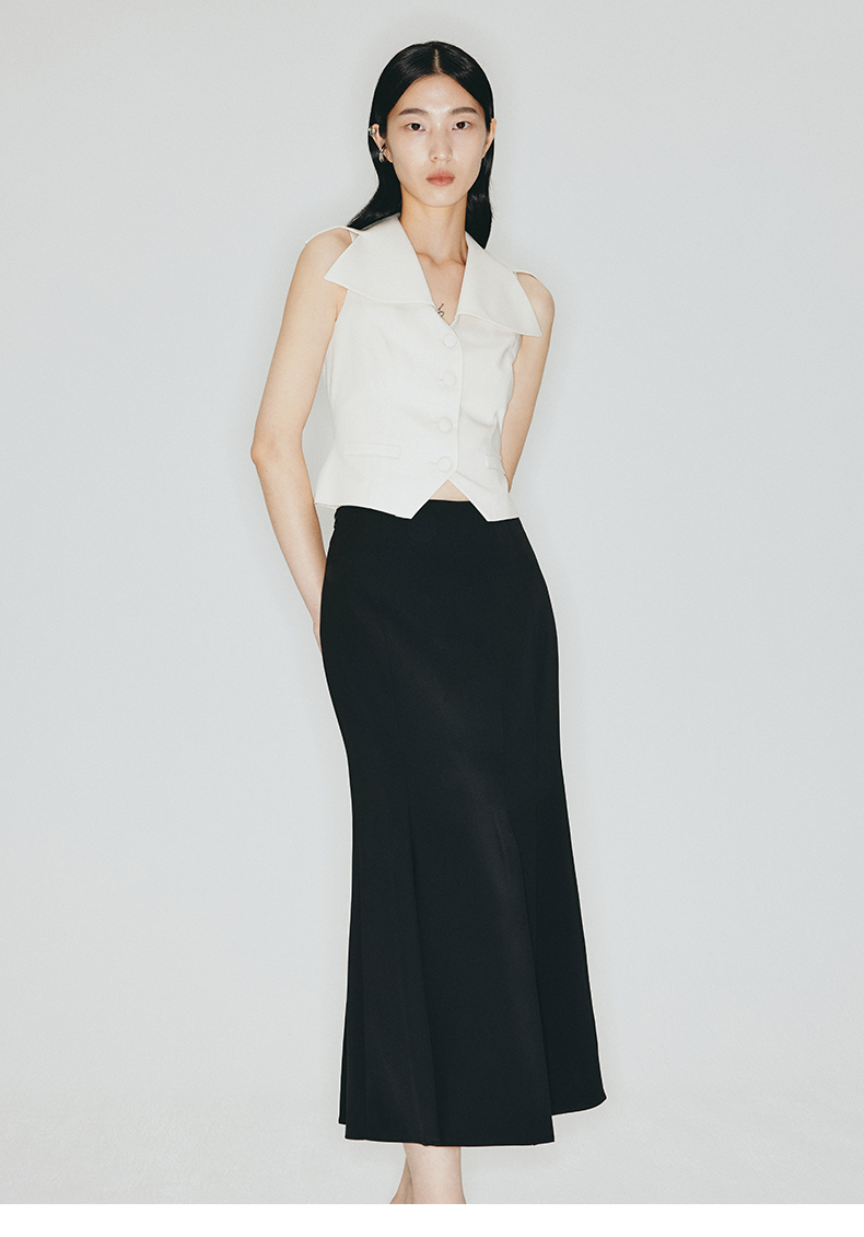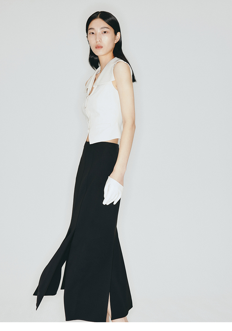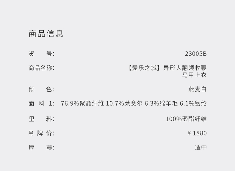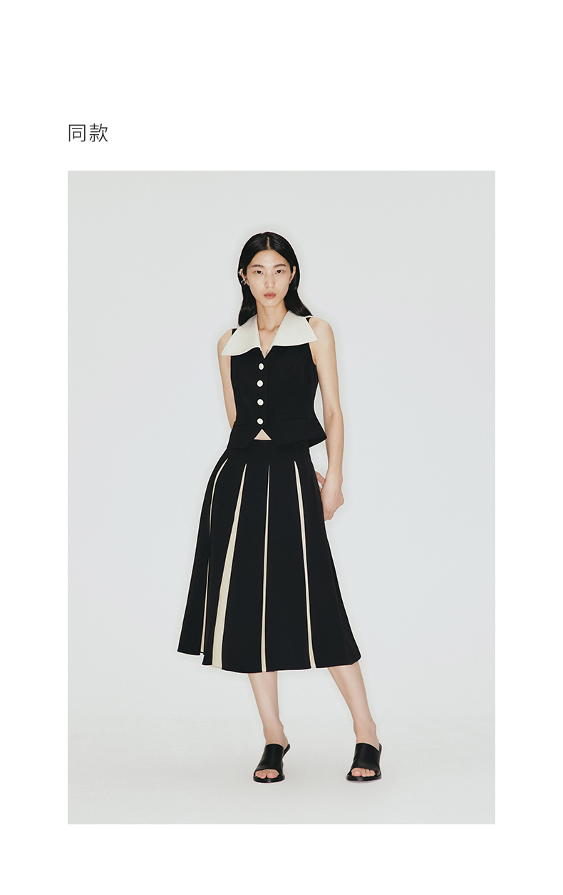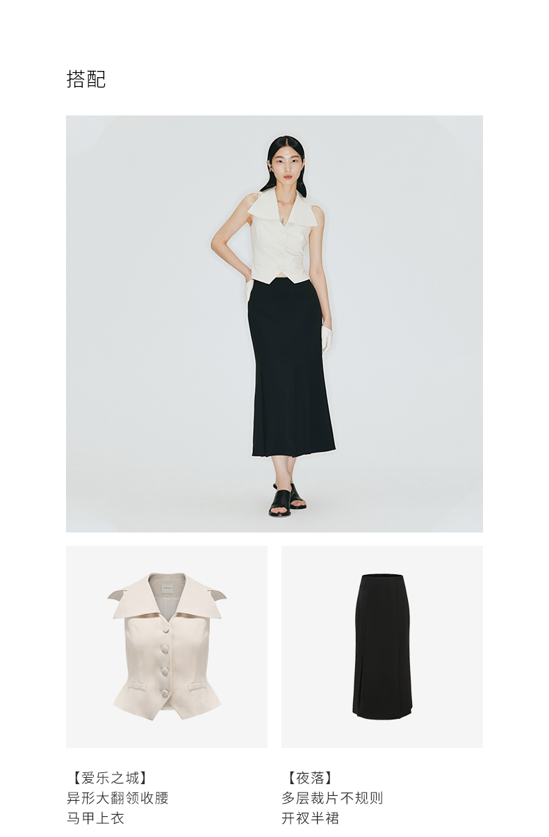 【爱乐之城】异形大翻领收腰马甲上衣/23005B